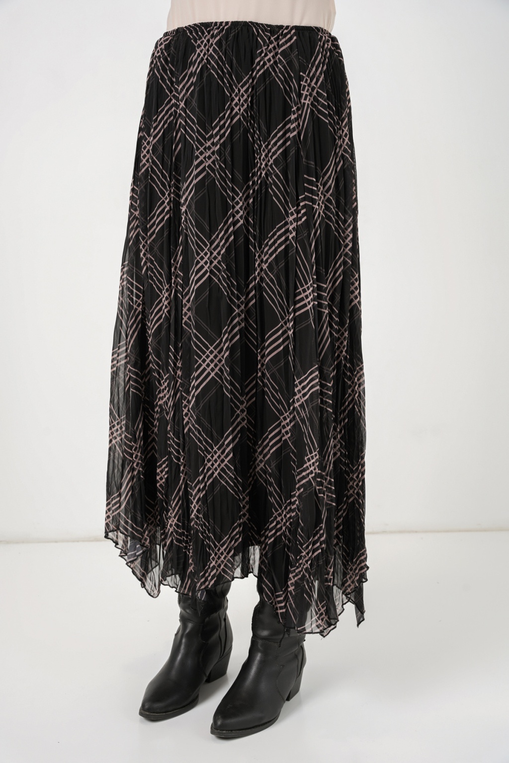 Kadin Asimetrik Kesim Sifon Etek 8056ÜRÜNÜMÜZ ASTARLIDIR.