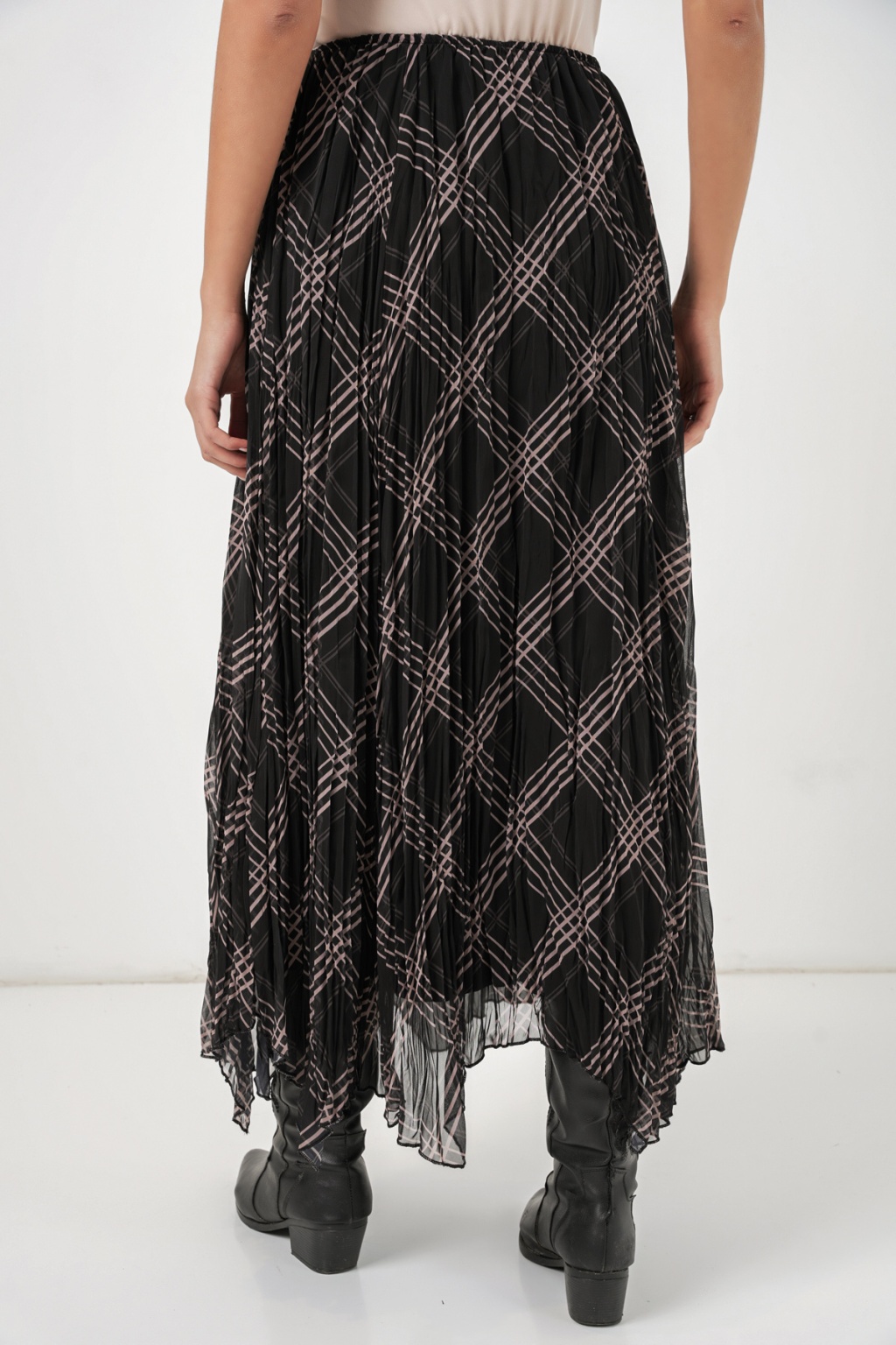 Kadın Asimetrik Kesim Şifon Etek 8056 - Siyah