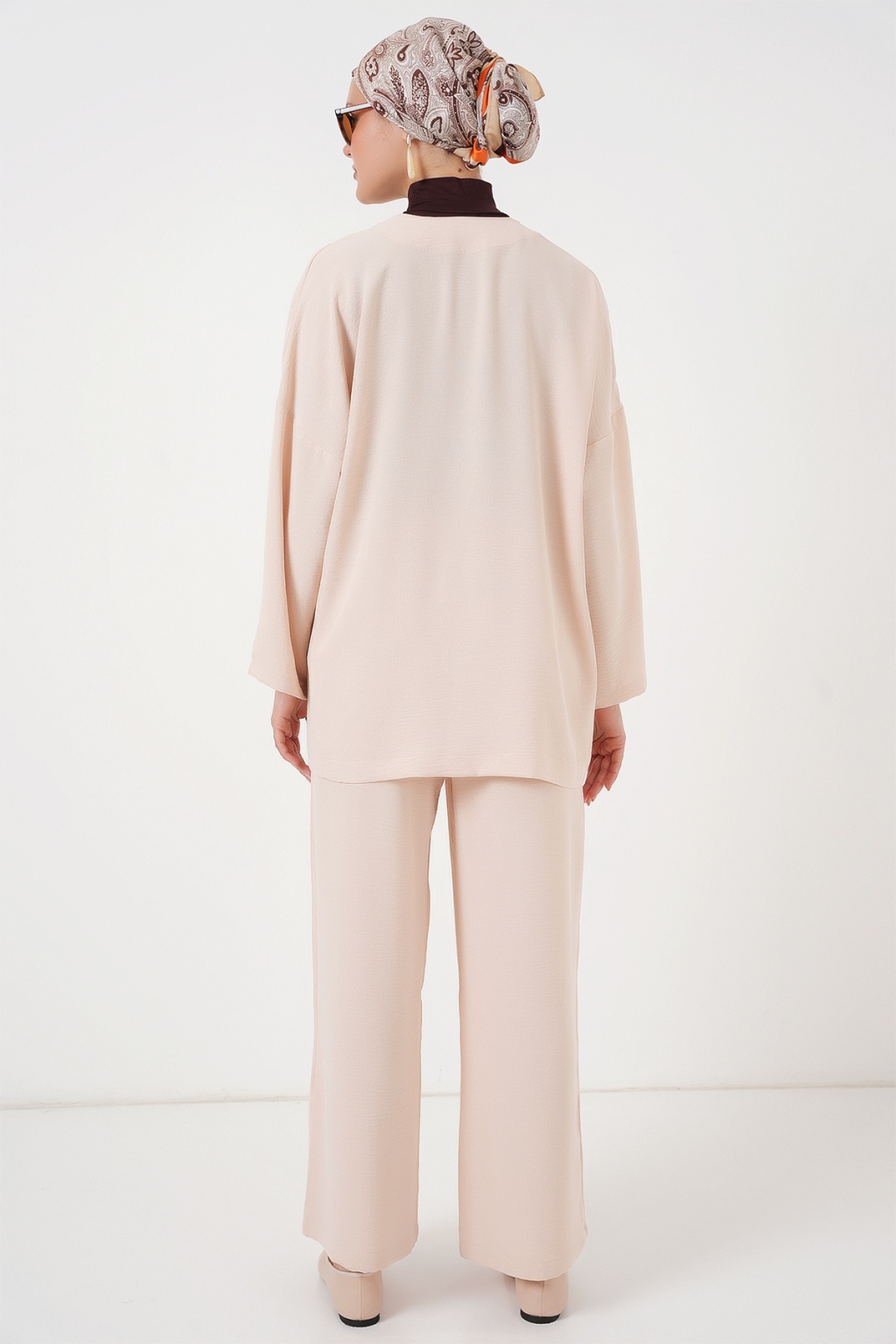 Kadın Ayrobin Kimono Pantolon İkili Takım 6739 - Krem