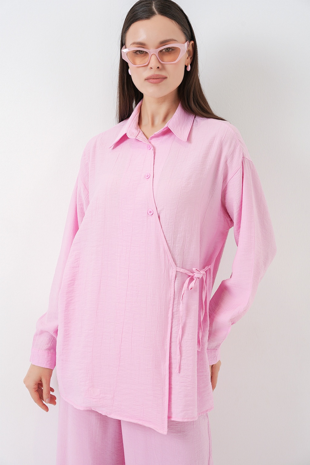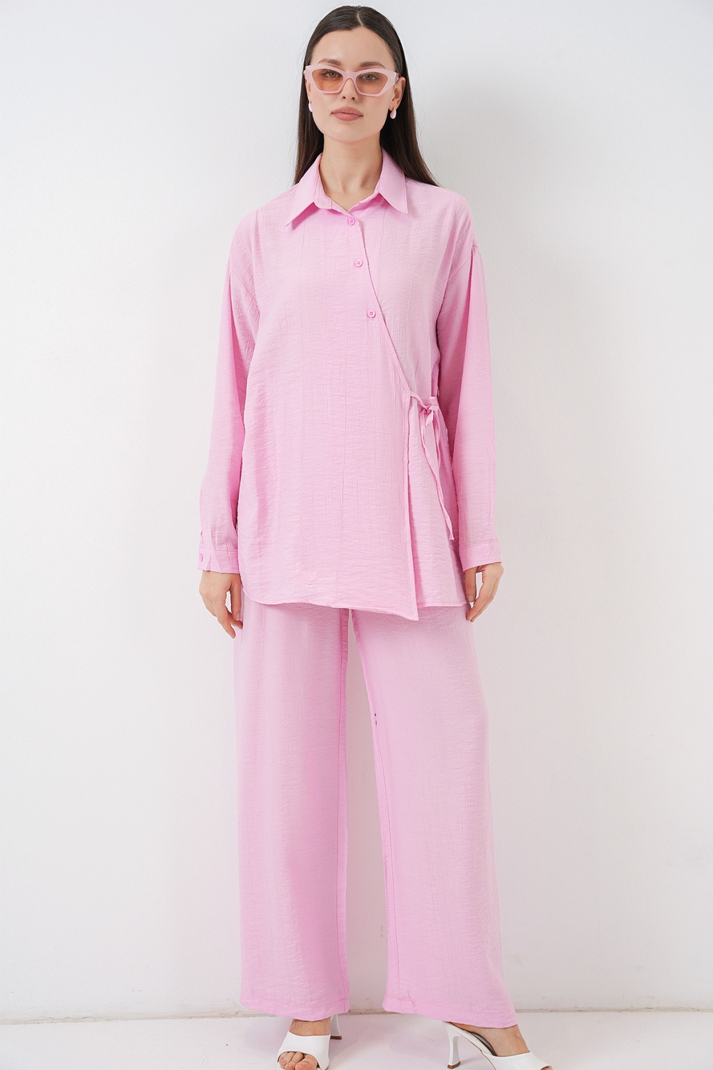 Kadın Bağcıklı Tunik Pantolon İkili Takım 6752 - Pudra
