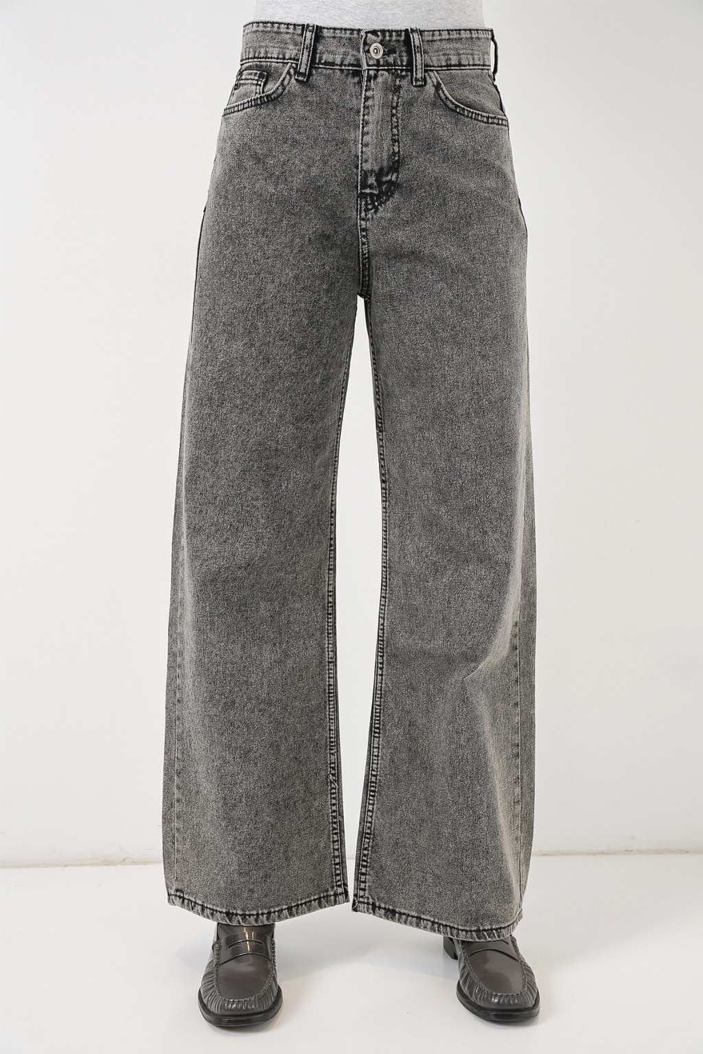 Bol Paça Yüksek Bel Palazzo Kot Pantolon