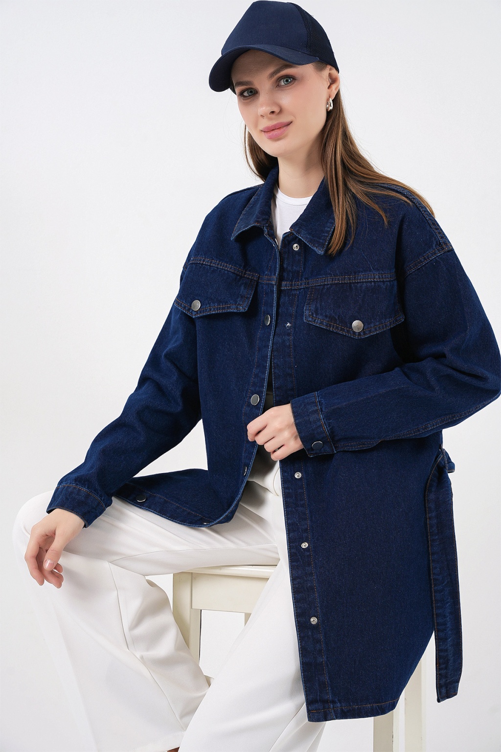 Kadin Boydan Dügmeli Kusakli Kot Ceket 0740