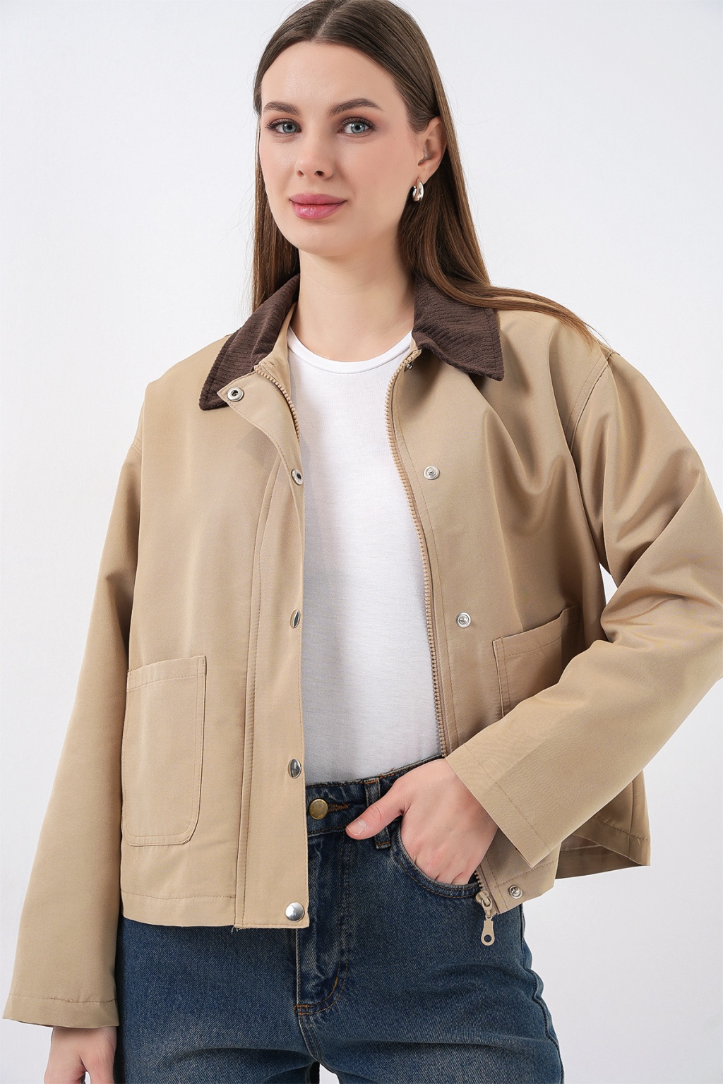 Kadin Cep Detayli Kisa Ceket 5975
