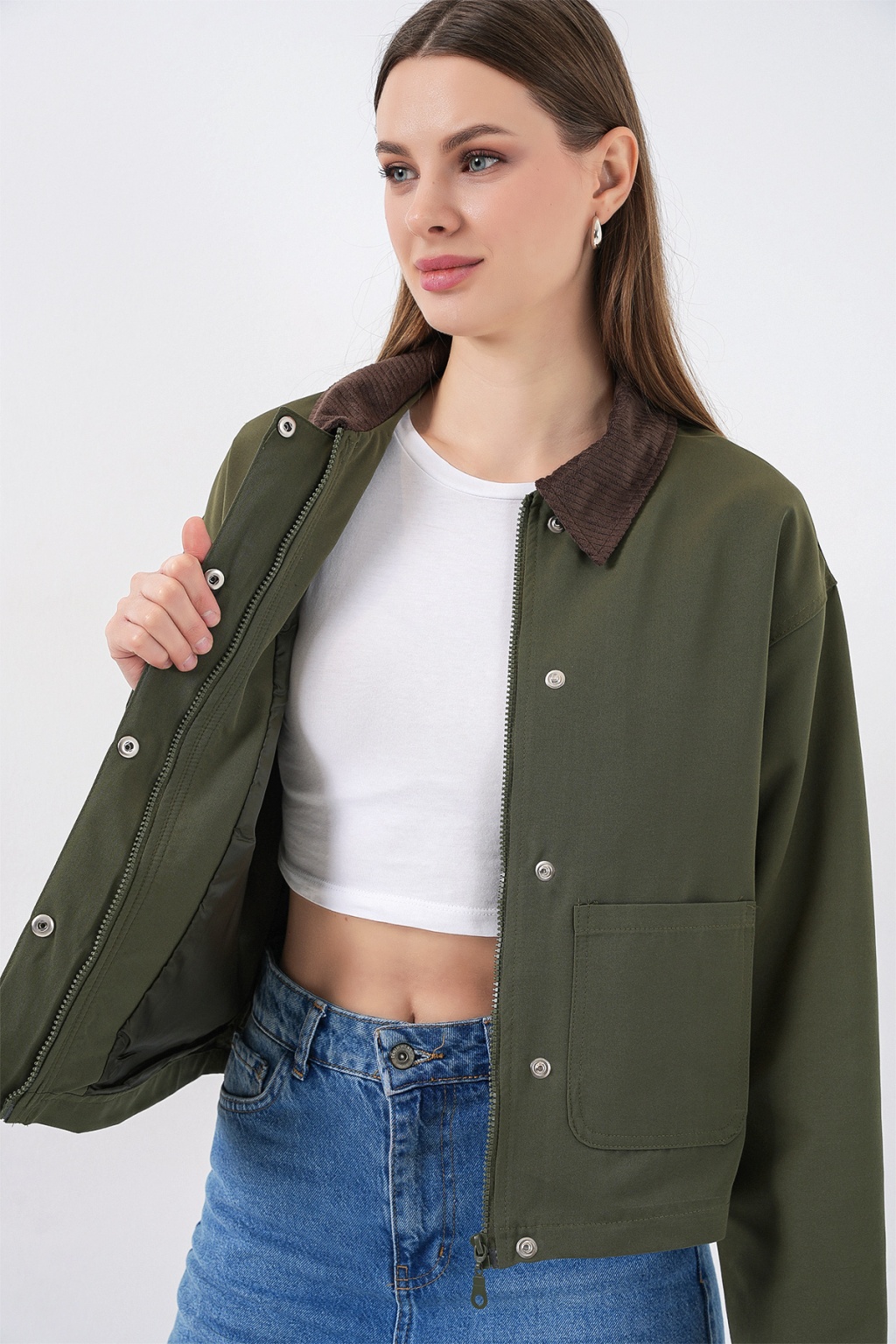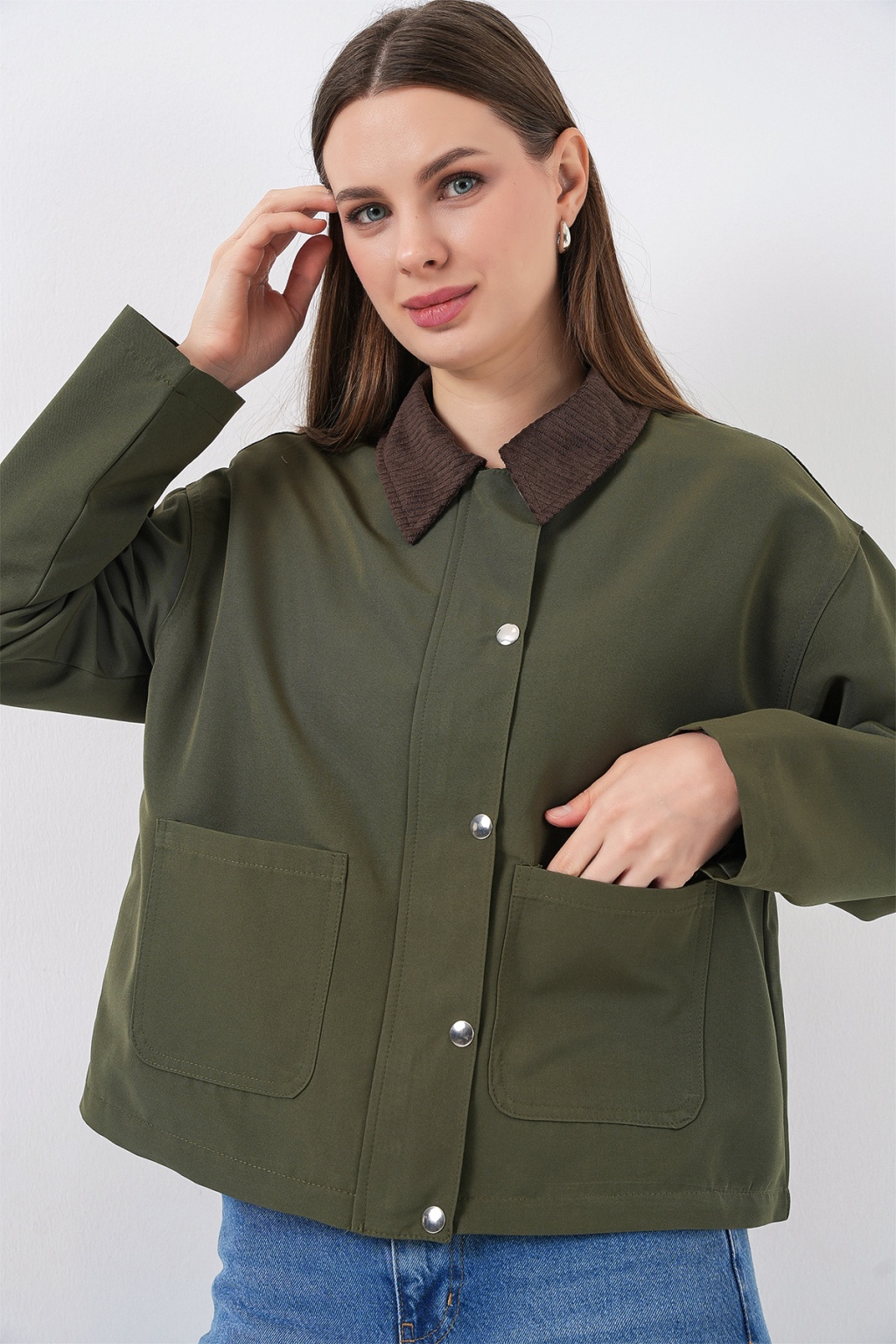 Kadin Cep Detayli Kisa Ceket 5975