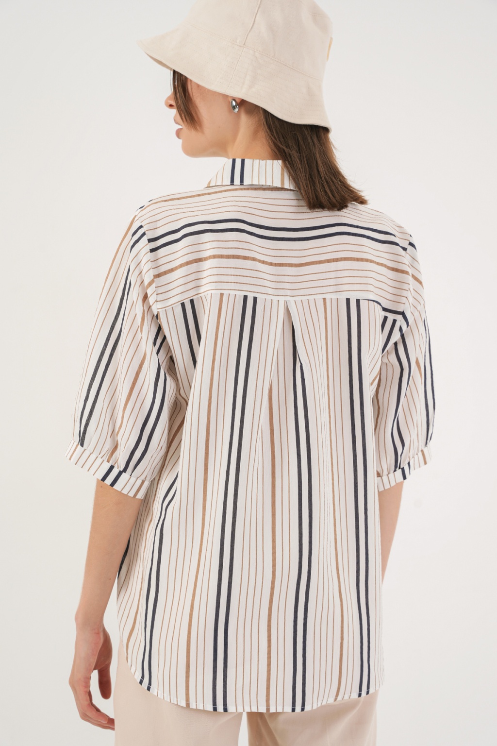 Kadın Çizgili Kısa Kol Gömlek 20345 - Bej