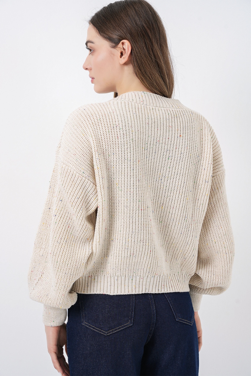 Kadın Crop Triko Hırka 15955 - Krem
