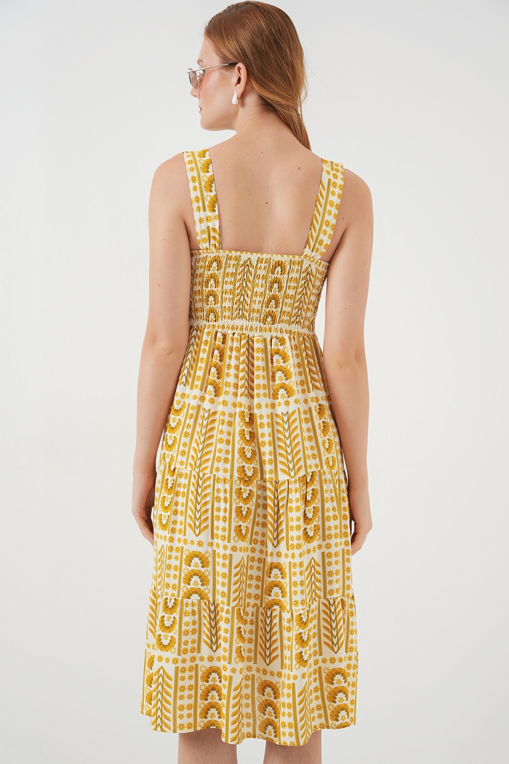 Kadın Desenli Askılı Midi Elbise 2577 - Sarı