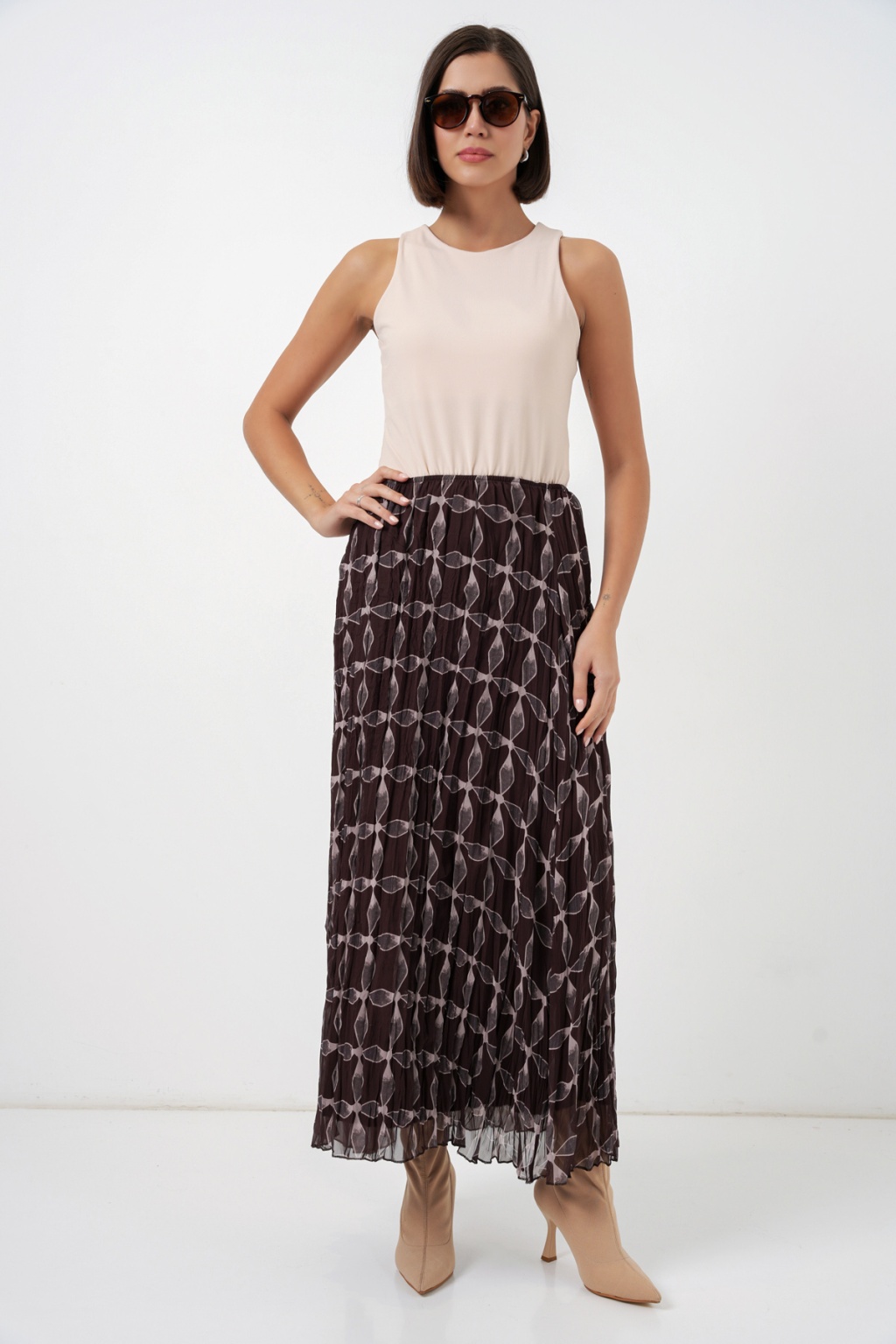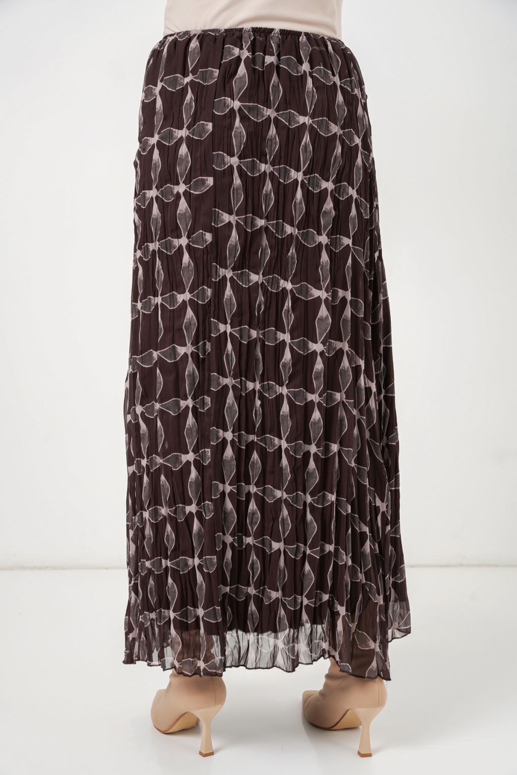 Kadın Desenli Astarlı Şifon Etek 8058 - Kahverengi