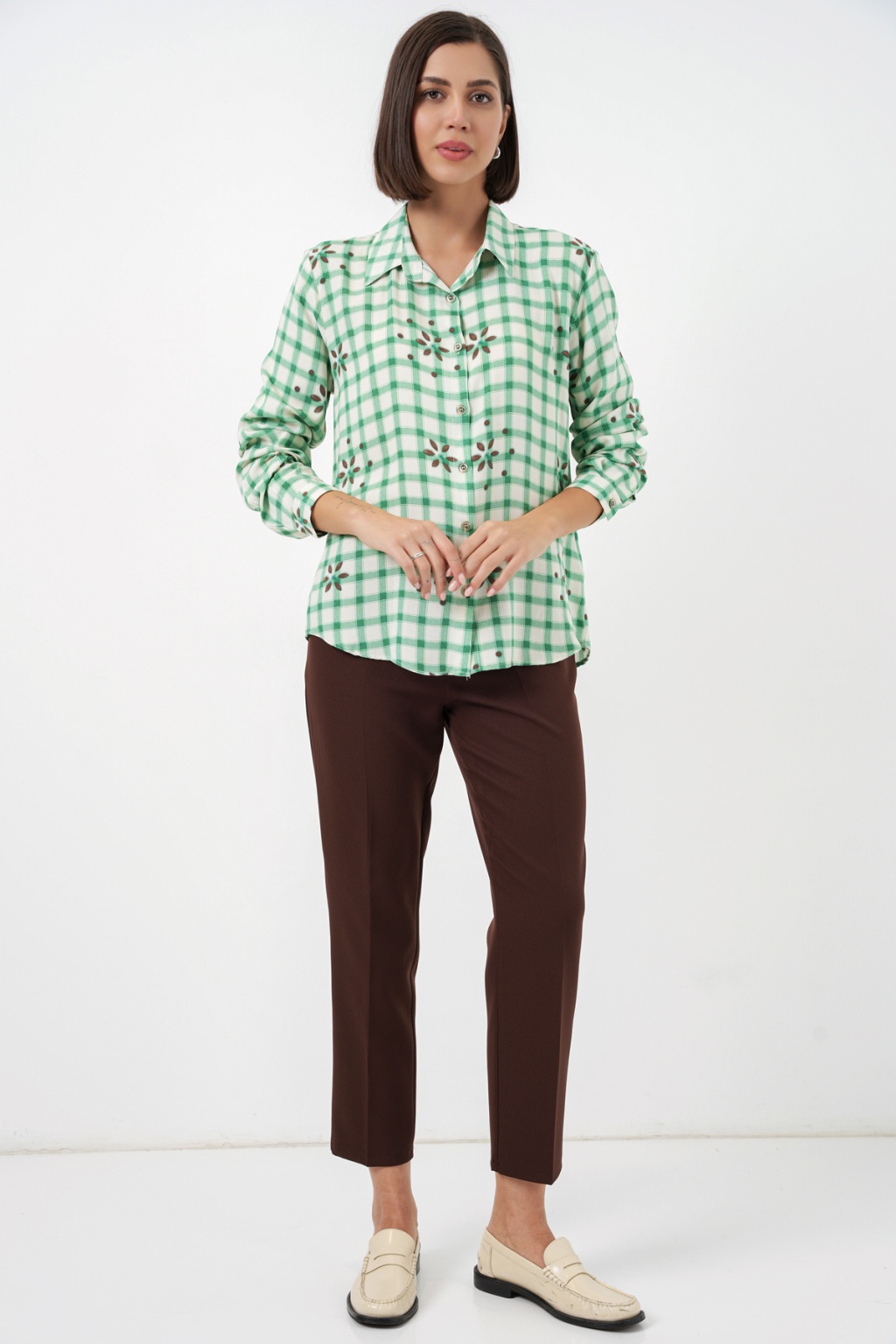Kadin Desenli Oversize Viskon Gömlek 20371