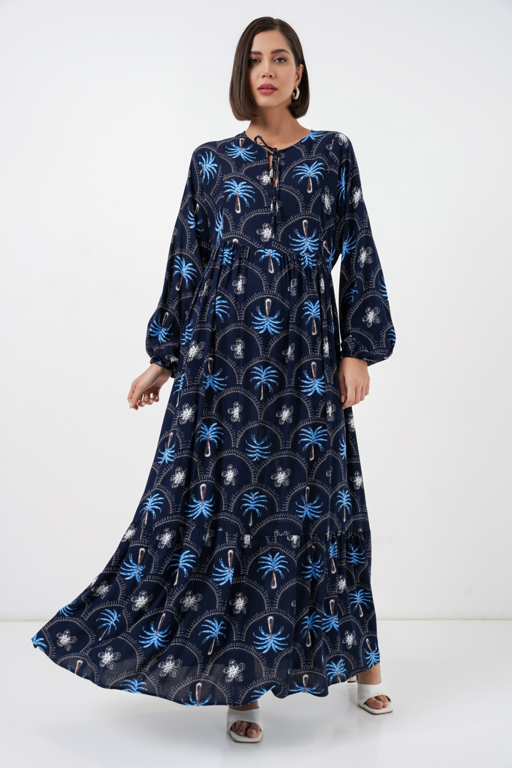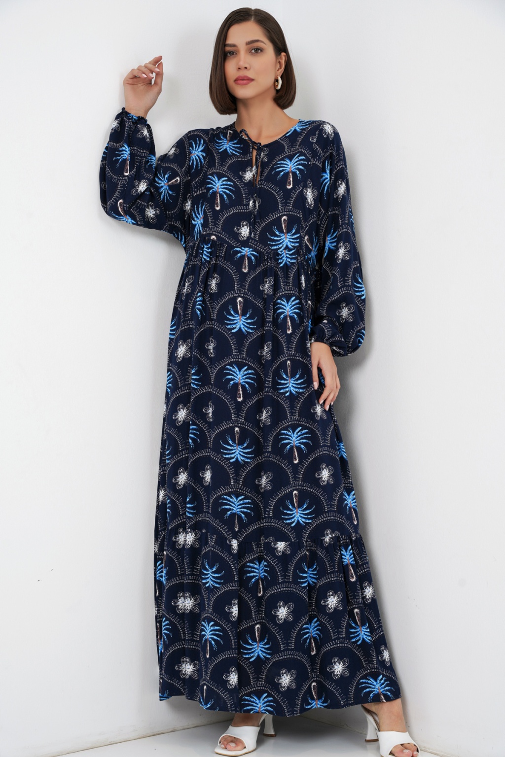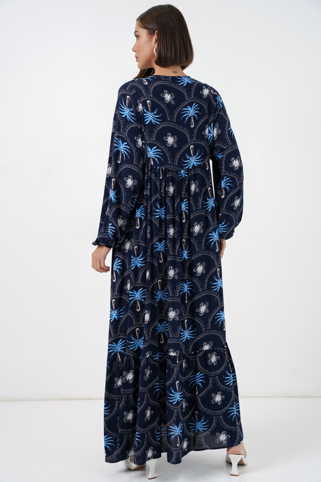 Kadın Desenli Tesettür Elbise 2594 - Lacivert