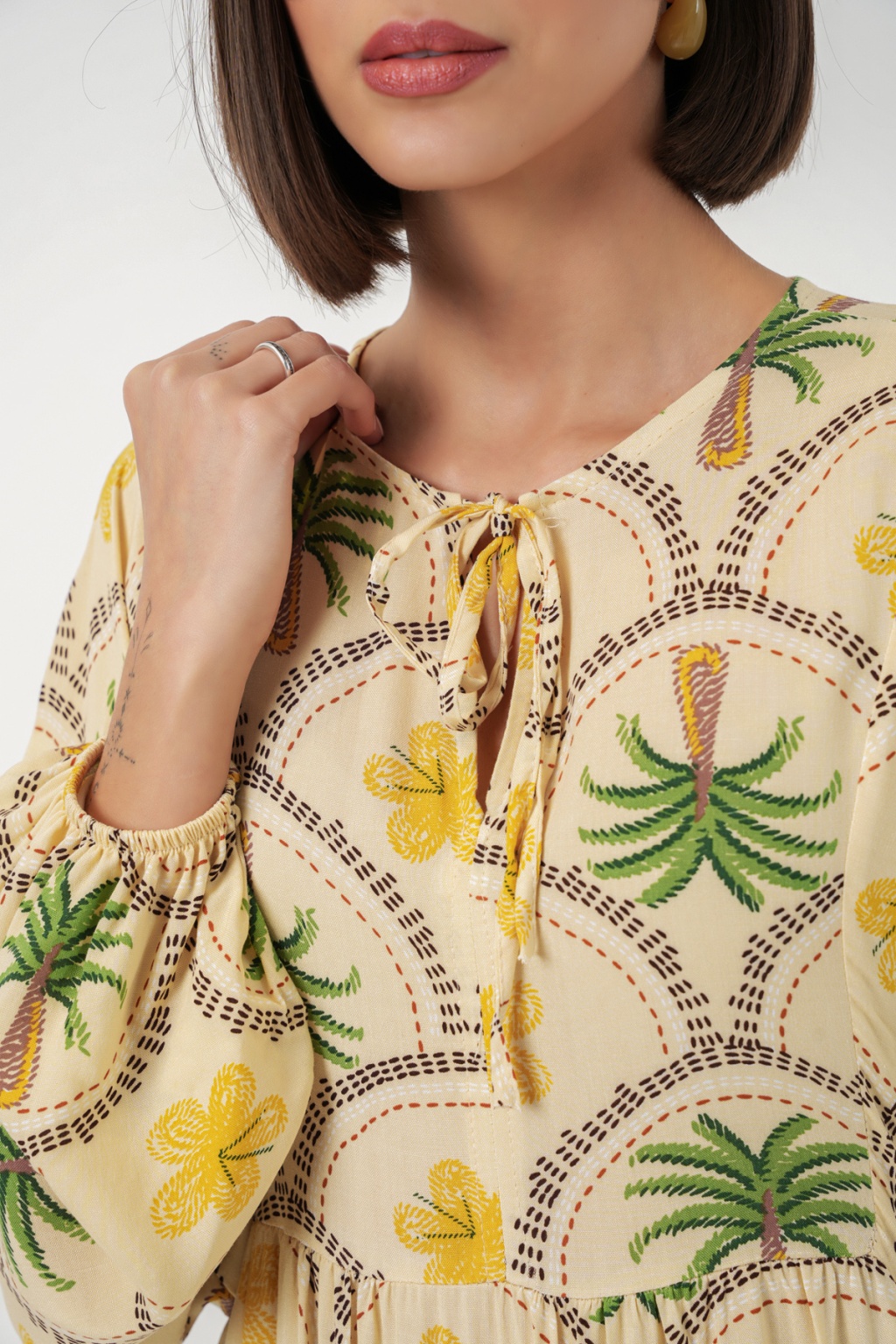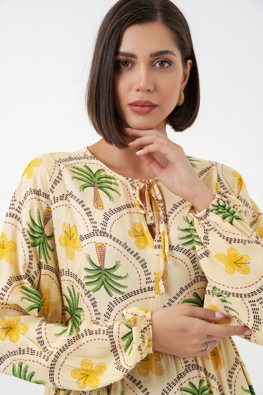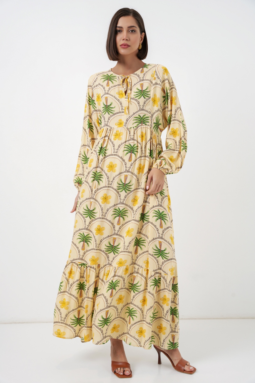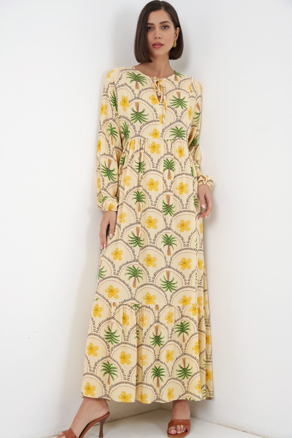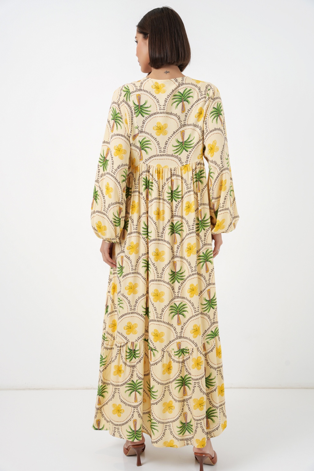Kadın Desenli Tesettür Elbise 2594 - Sarı