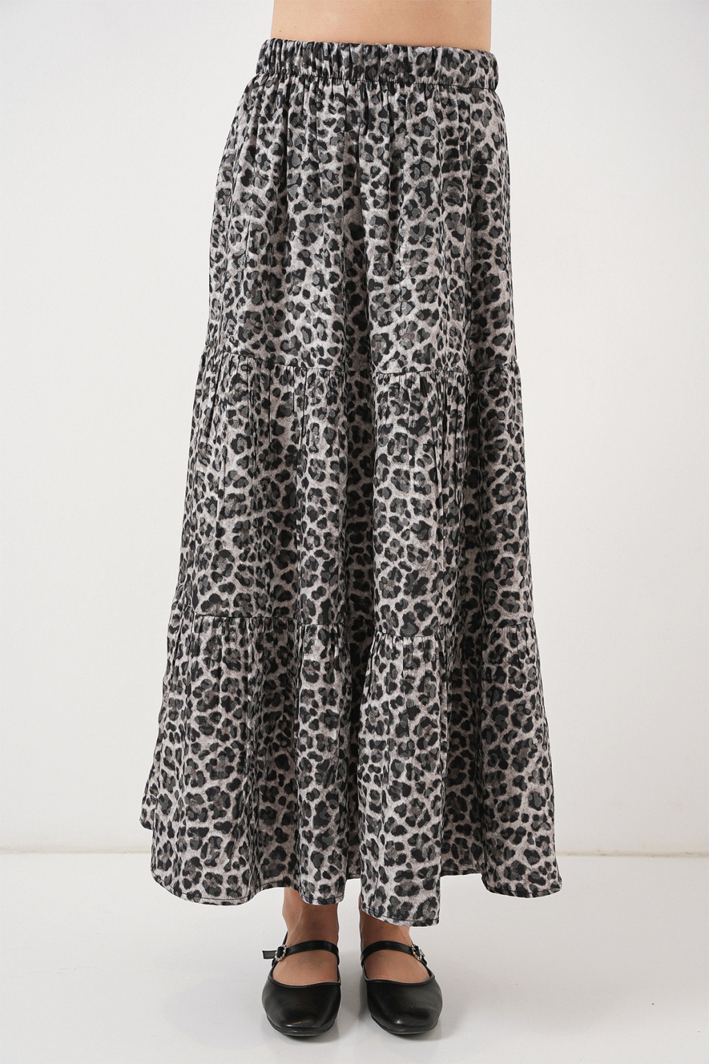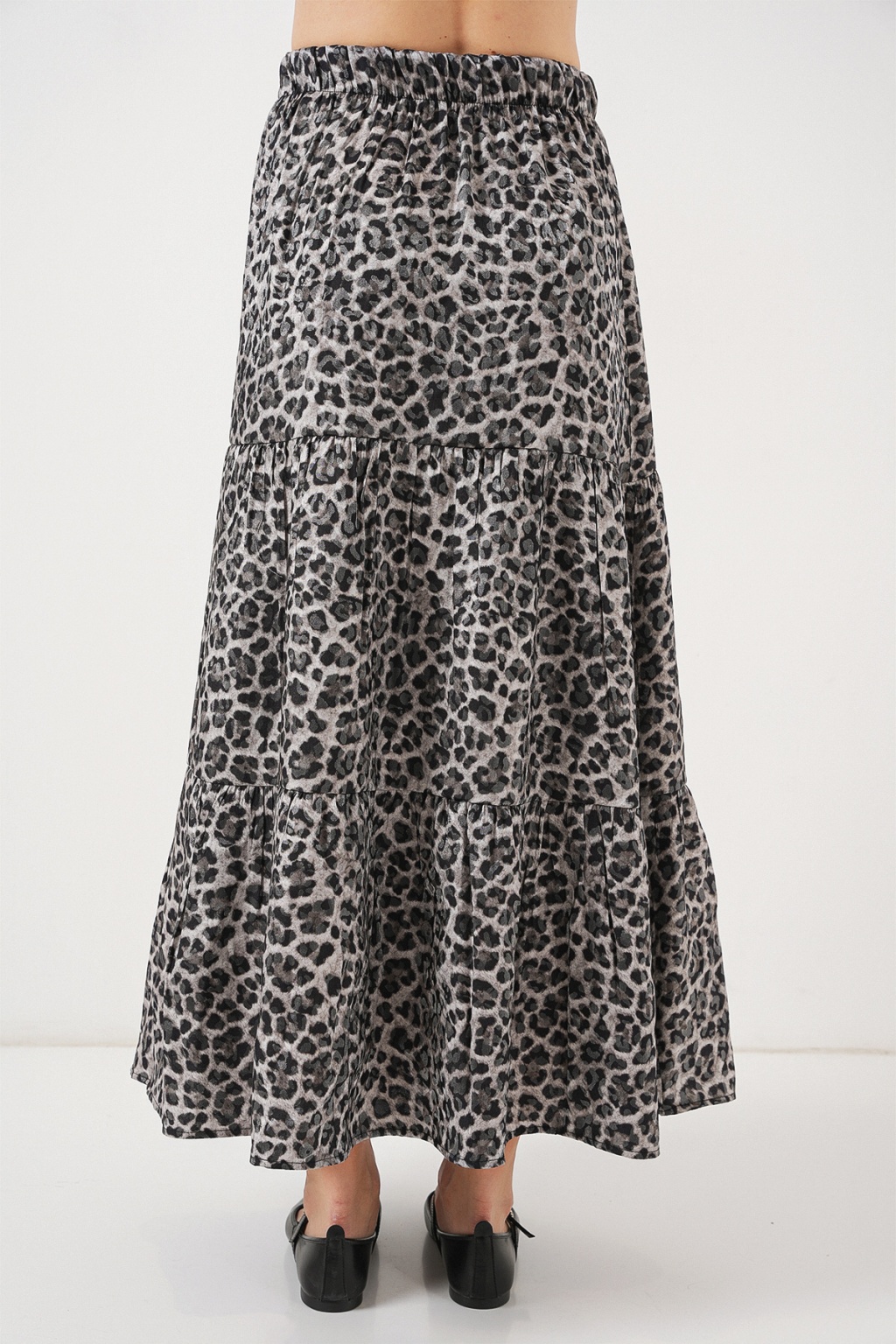 Kadın Desenli Uzun Etek 8053 - Antrasit