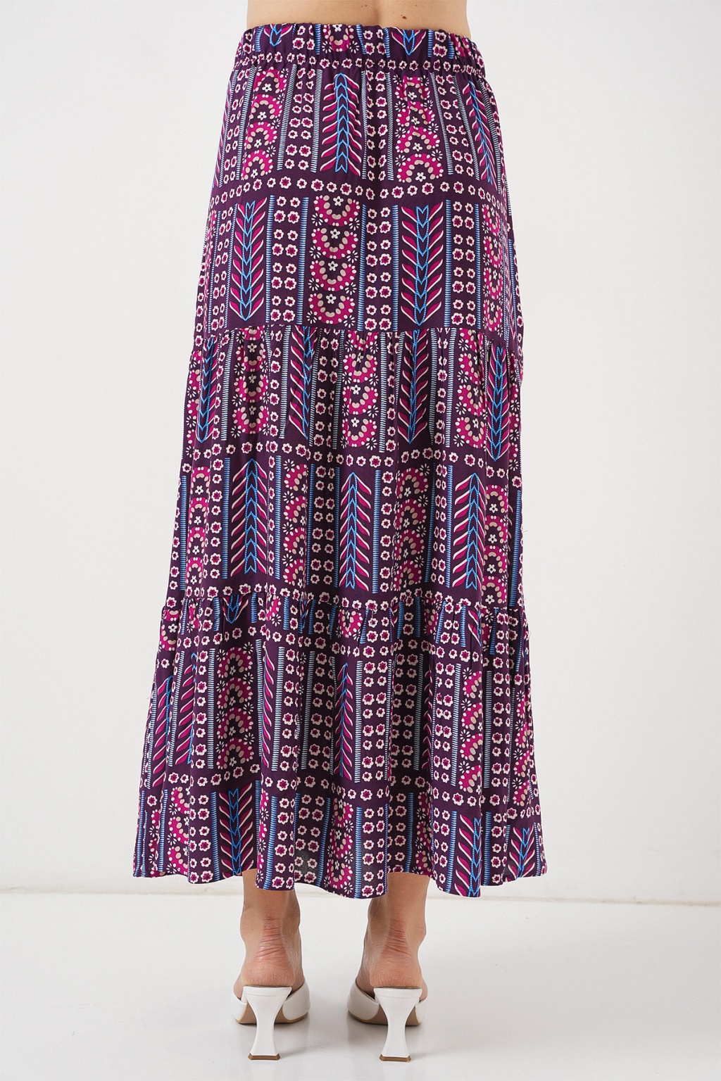 Kadın Desenli Uzun Etek 8053 - Mor