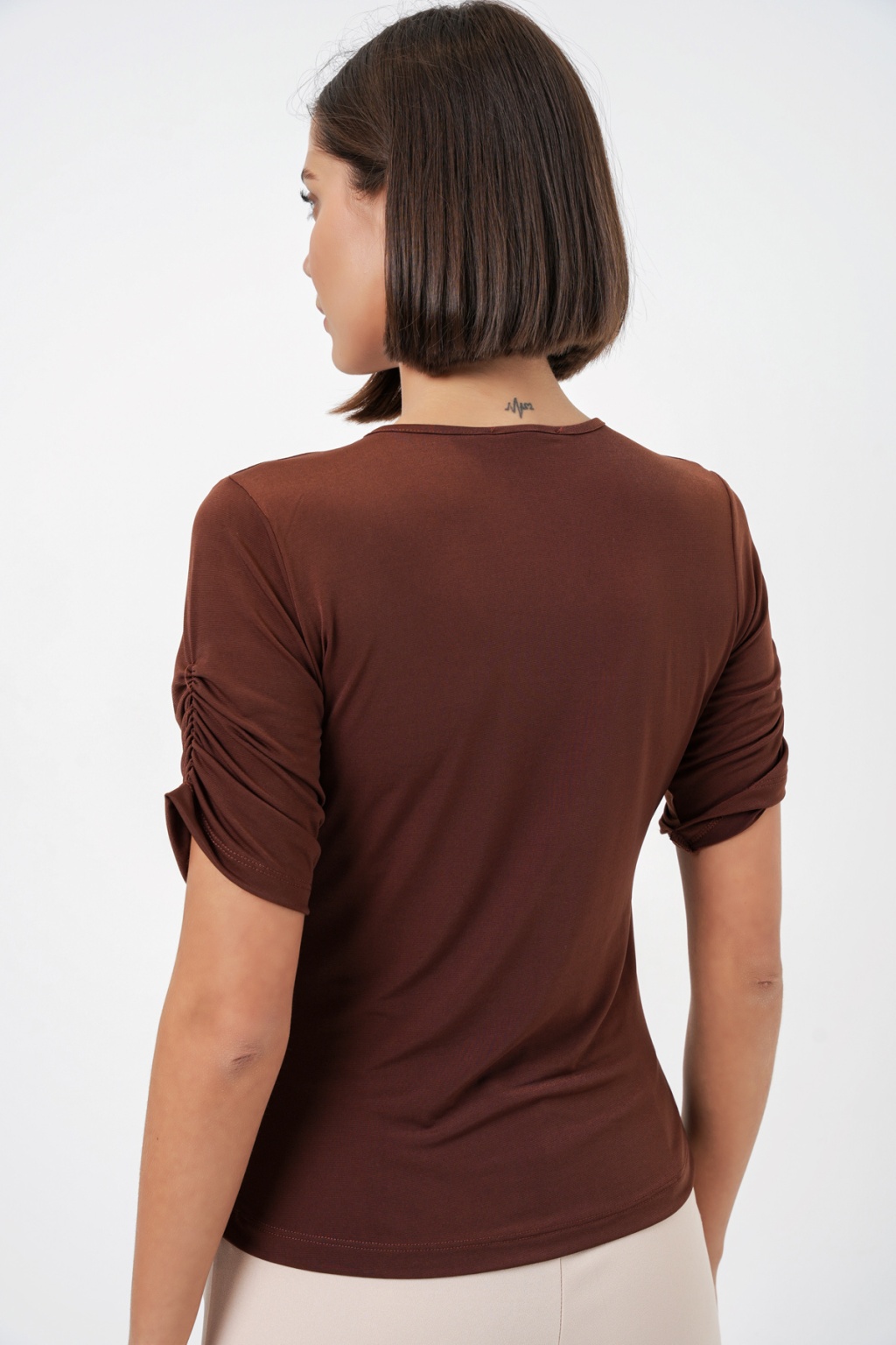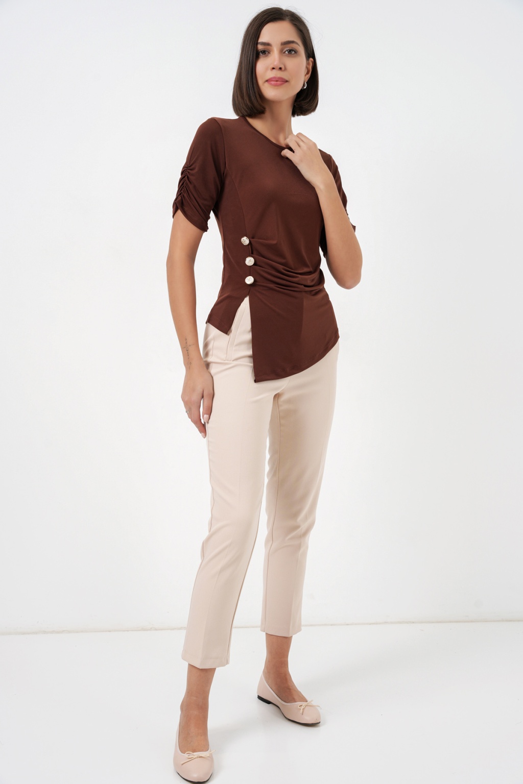 Kadin Dügme Detayli Sandy Bluz 992Not: Ürün Vücuda Oturan Kaliptir.