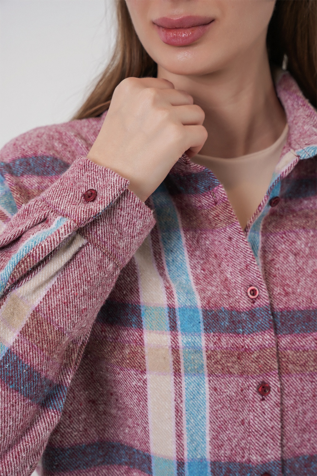 Kadin Ekose Desen Dügmeli Oversize Oduncu Gömlek