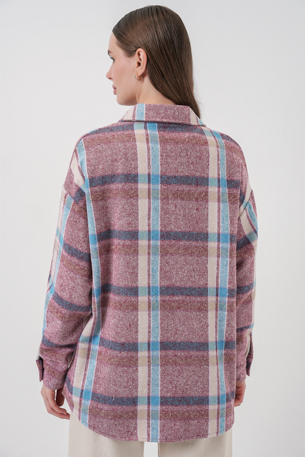 Kadın Ekose Desen Oversize Oduncu Gömlek 3854 Pembe