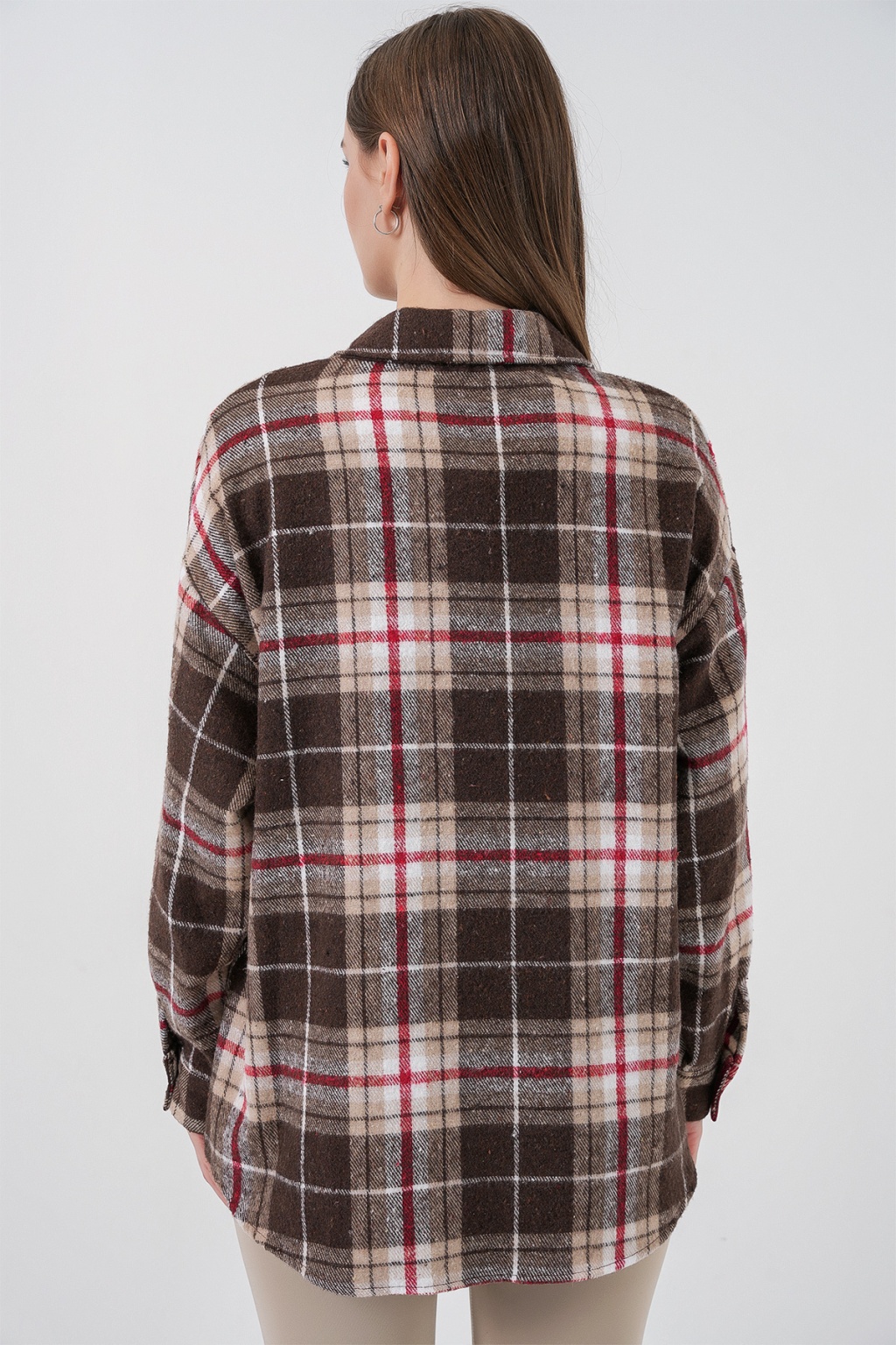Kadın Ekose Desen Oversize Oduncu Gömlek 3854 Vizon