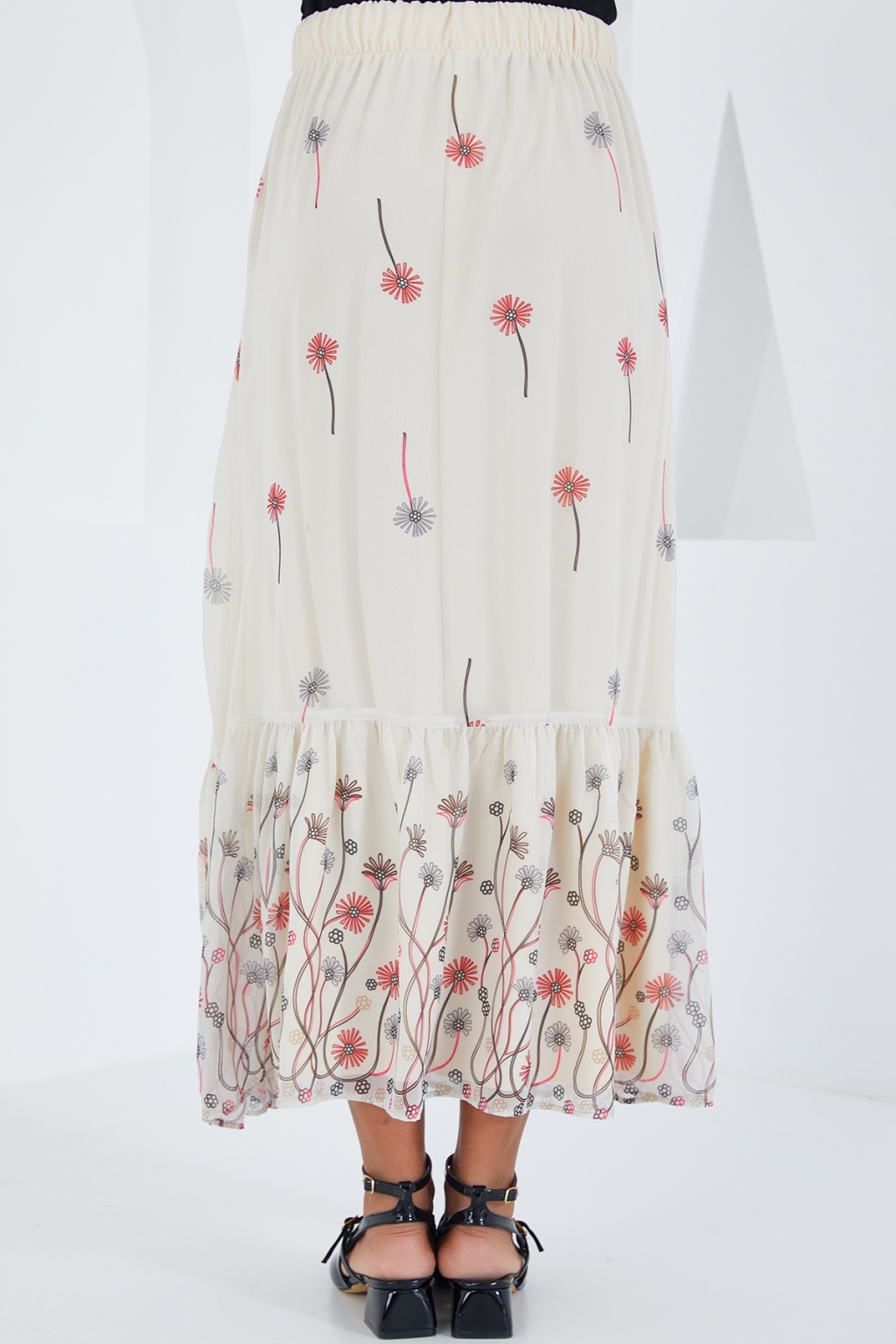 Kadın Ekru Desenli Şifon Etek 8010