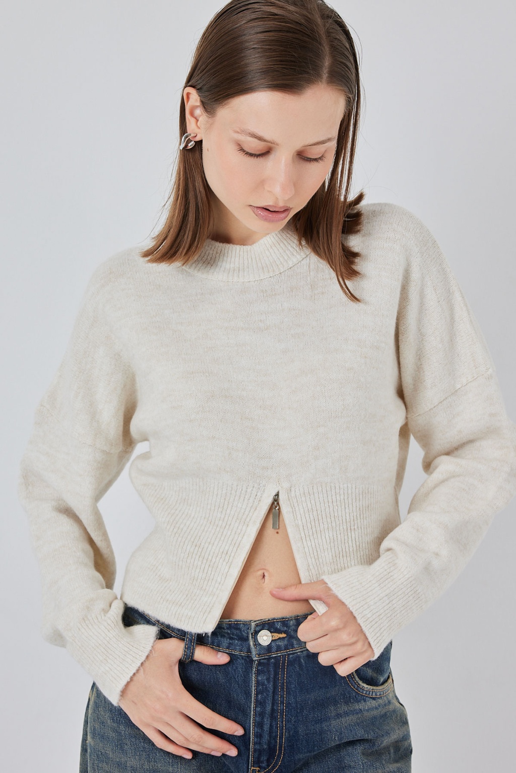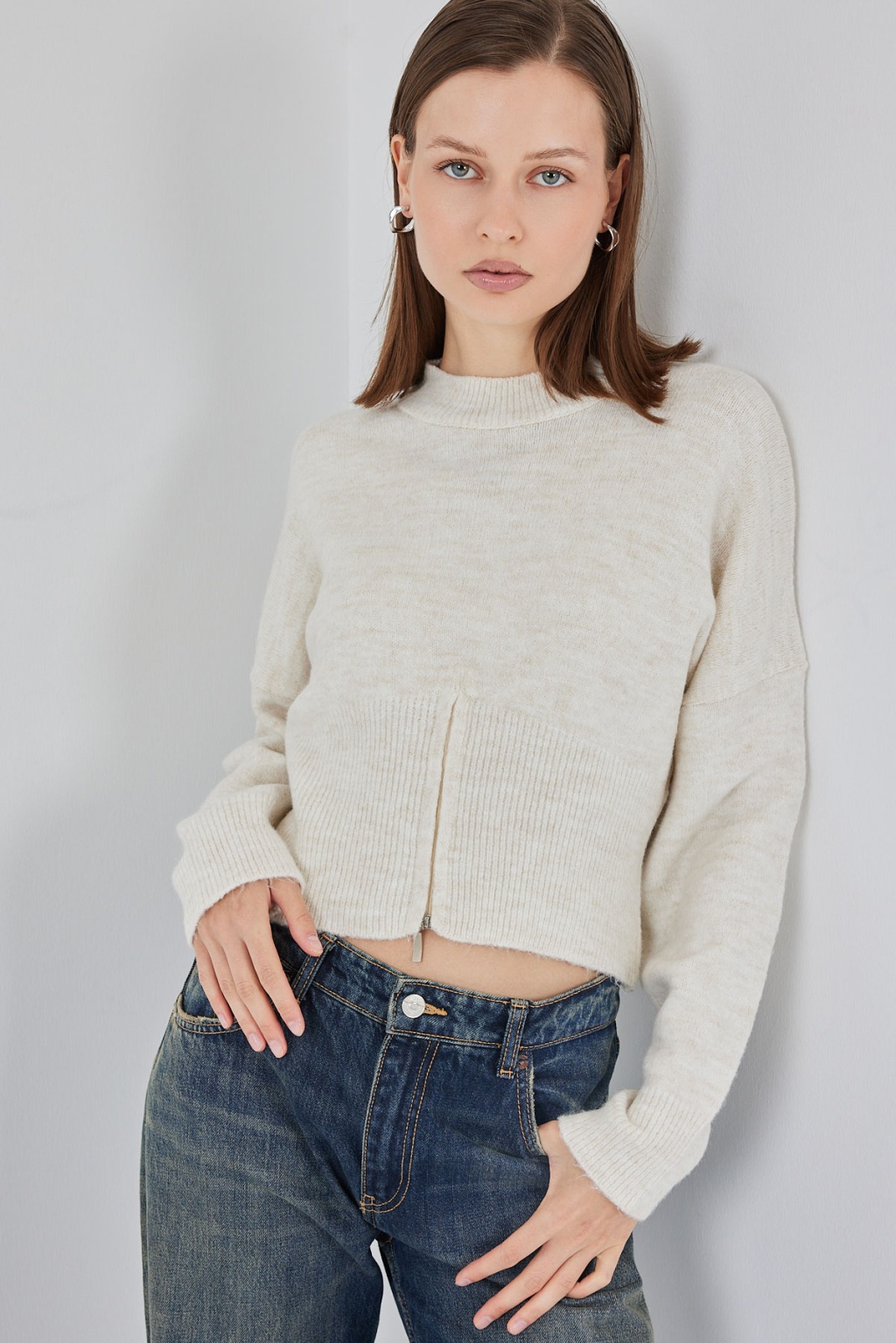 Kadin Fermuarli Triko Kazak