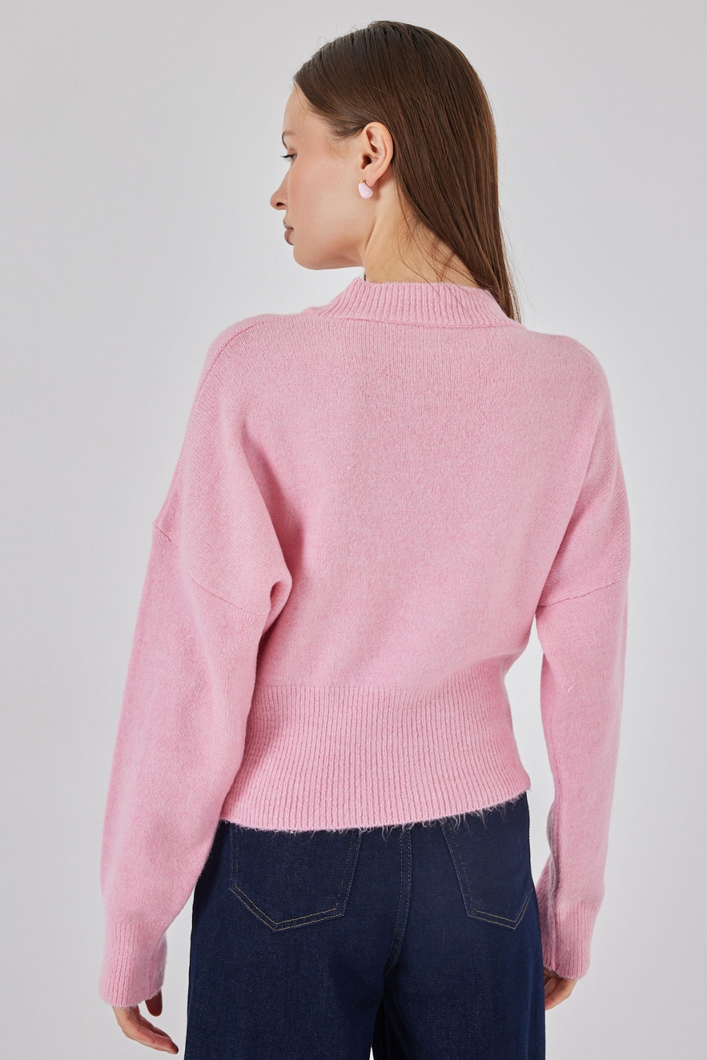 Kadın Fermuarlı Triko Kazak 15937 - Pembe