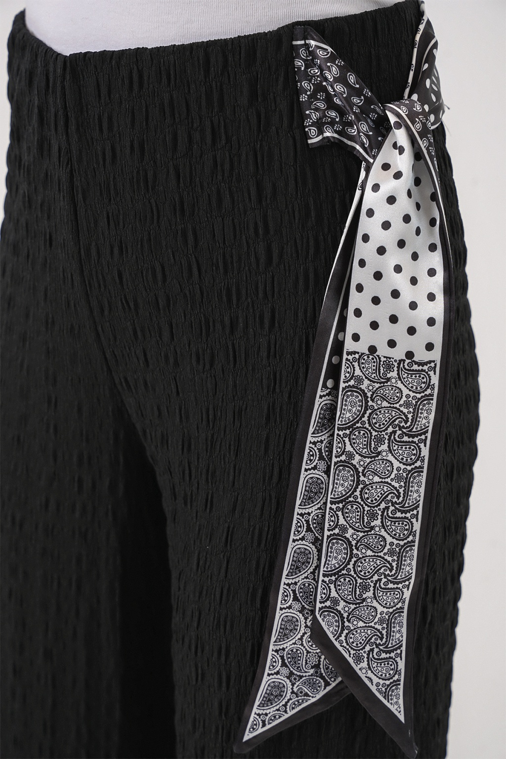 Kadın Fularlı Örme Pantolon 30070 - Siyah