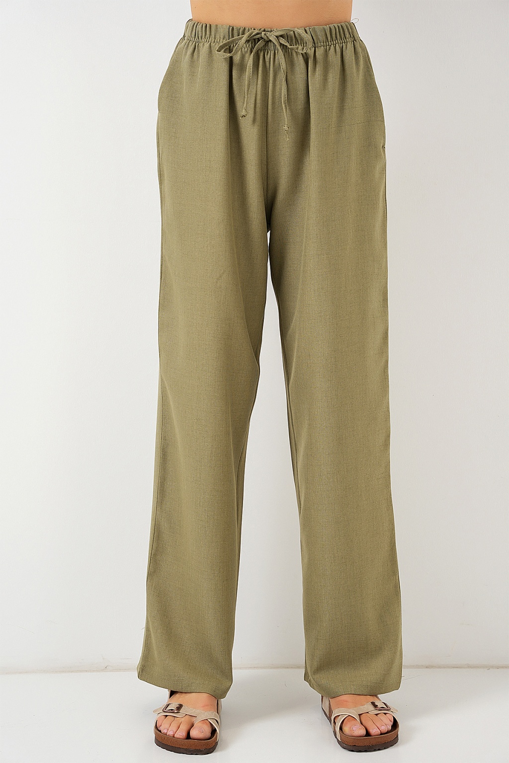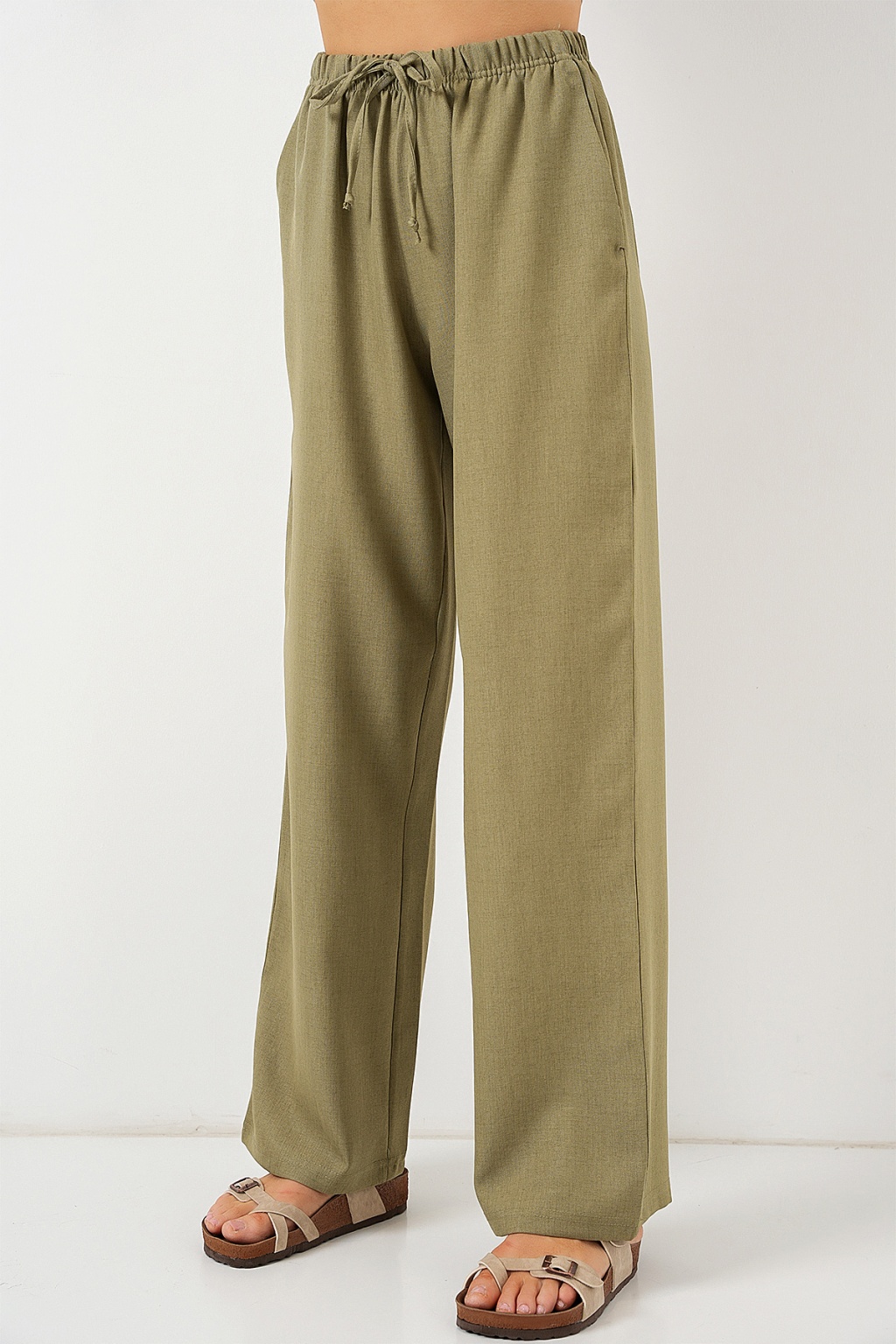 Kadın Geniş Paça Keten Pantolon 6735 - Çağla