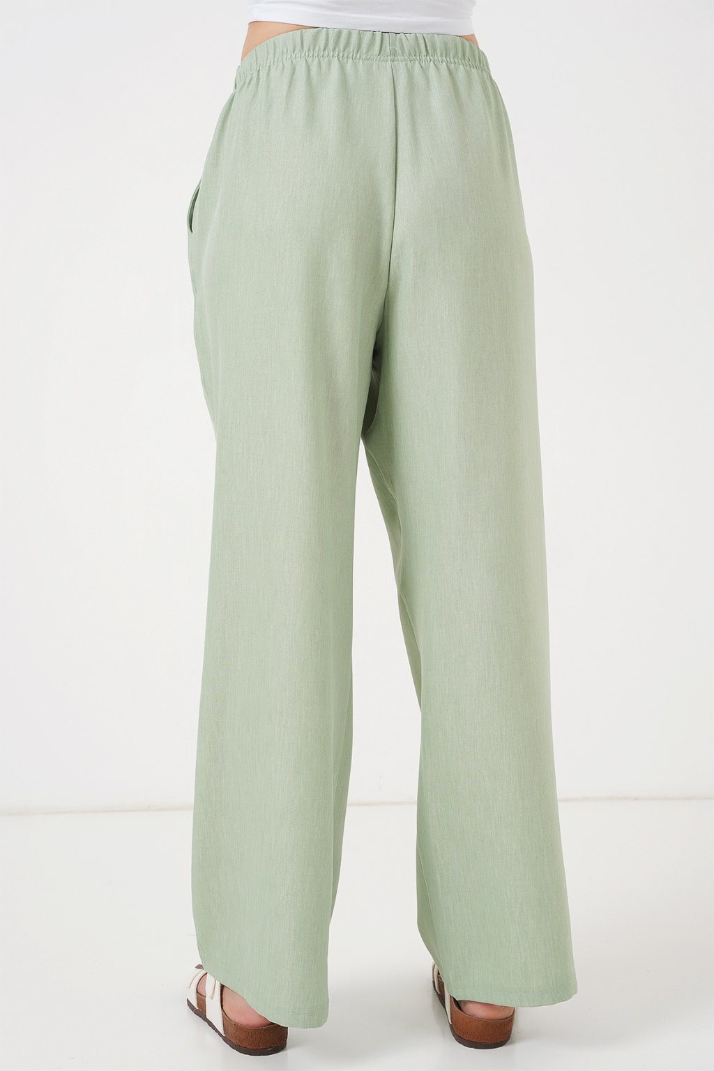 Kadın Geniş Paça Keten Pantolon 6735 - E.Yeşil