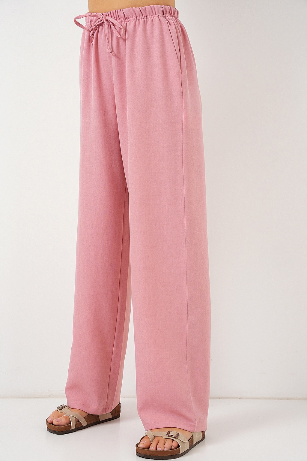 Kadın Geniş Paça Keten Pantolon 6735 - Pudra