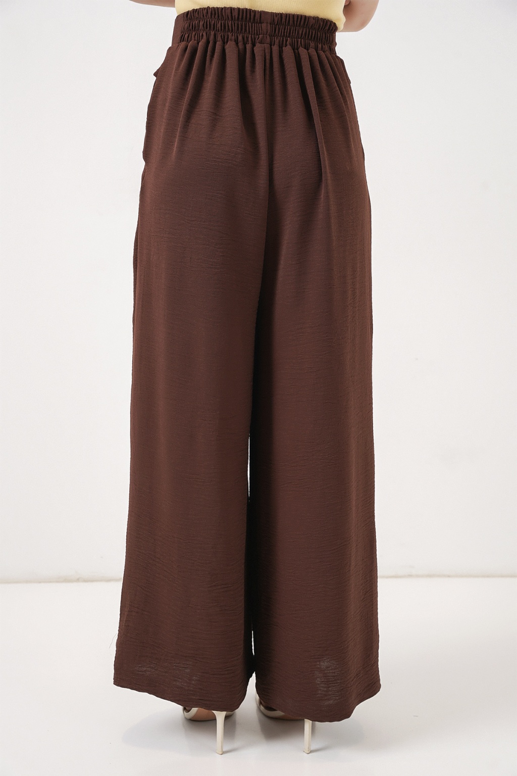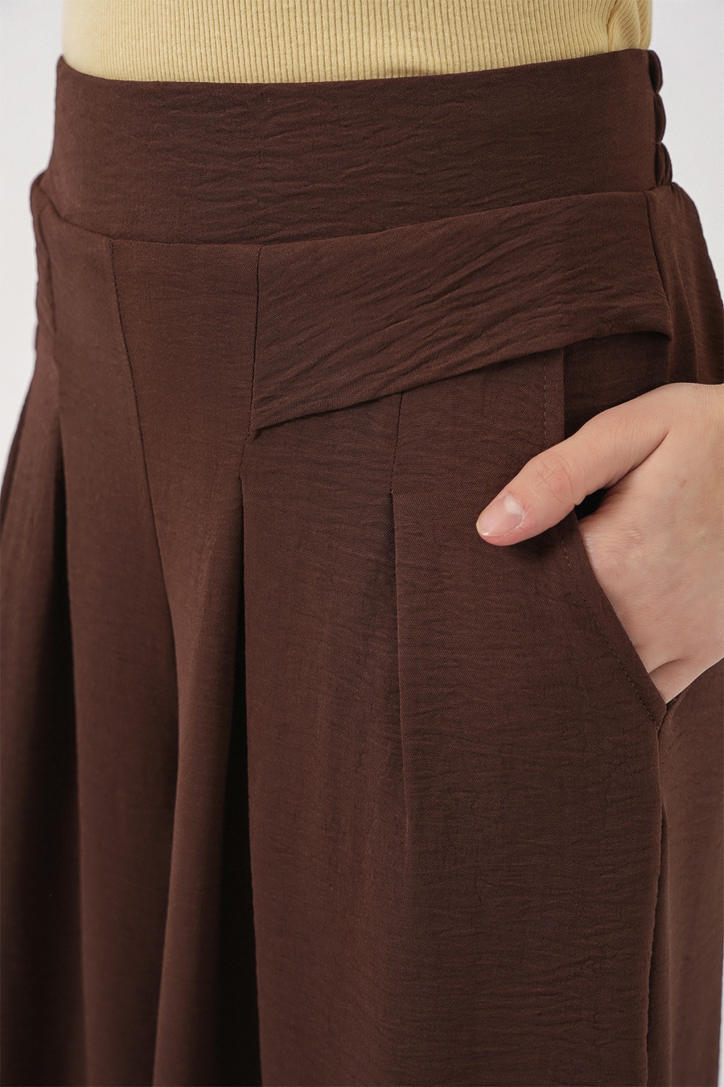 Kadın Geniş Paça Pileli Pantolon 6718 - Kahverengi