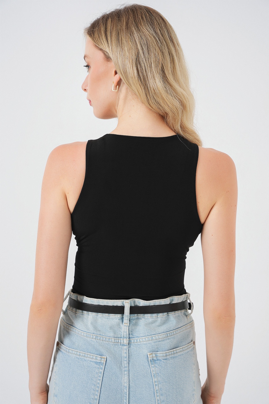 Kadın Halter Yaka Çıtçıtlı Body 972 - Siyah