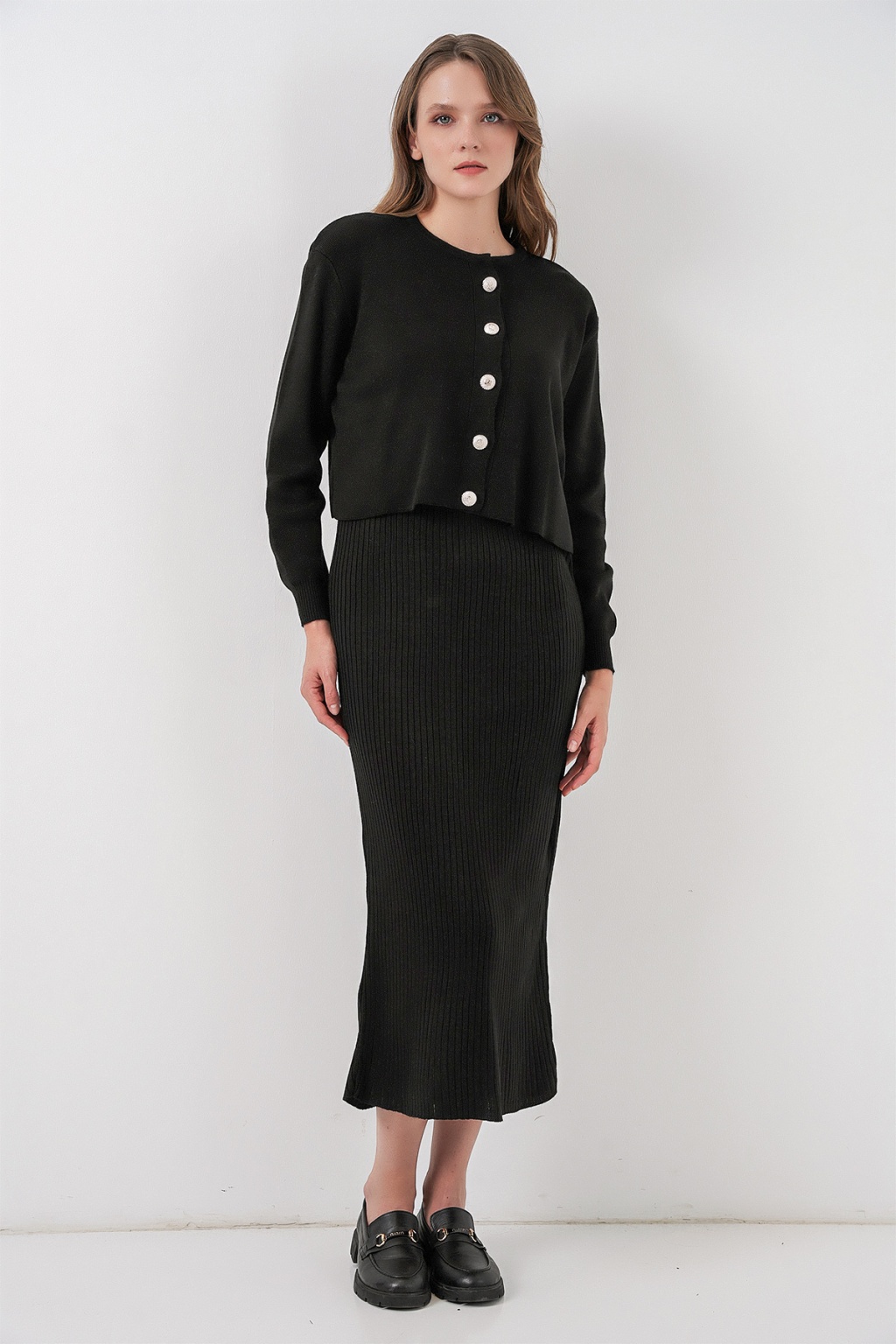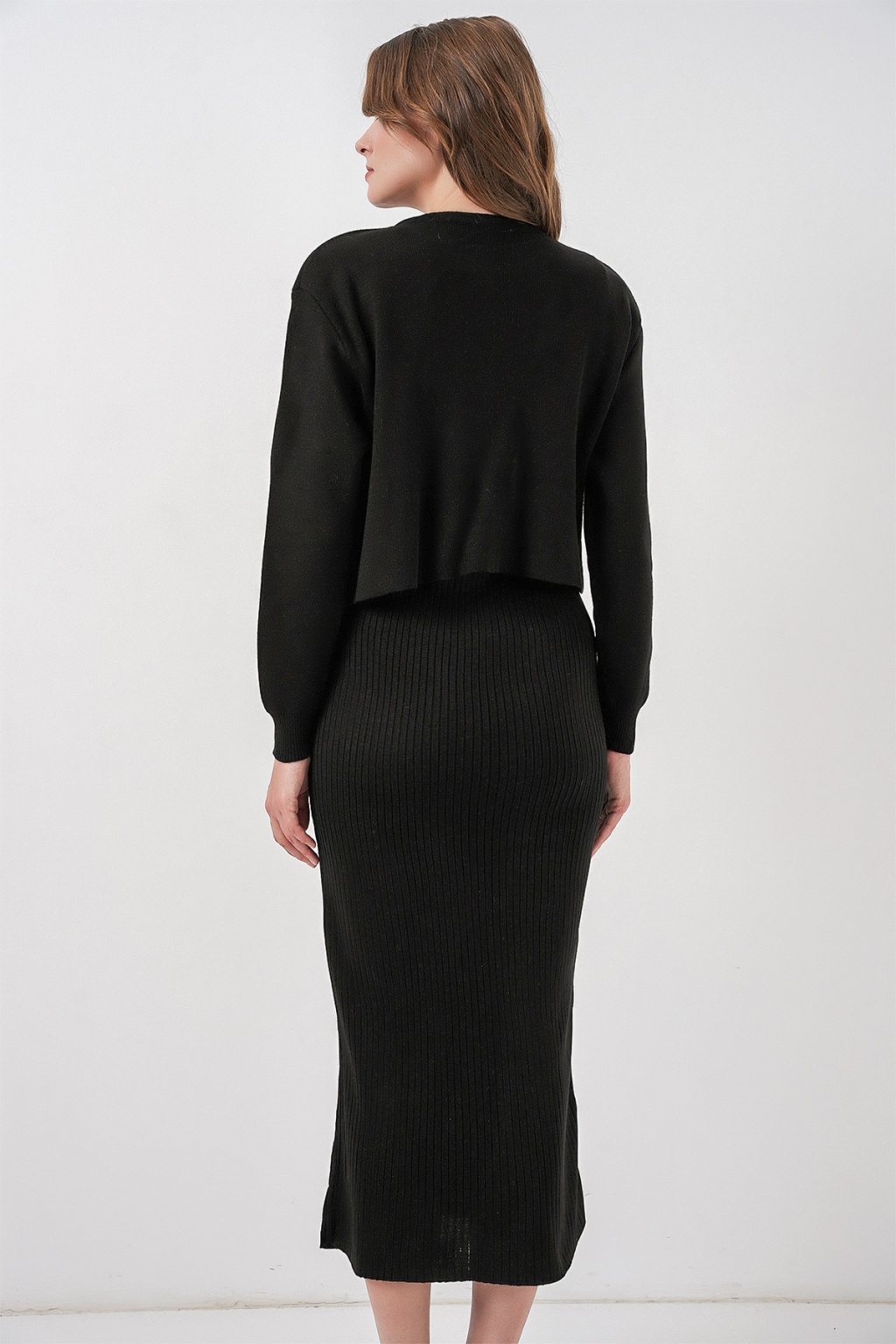 Kadın Hırka Elbise Triko İkili Takım 15960 - Siyah