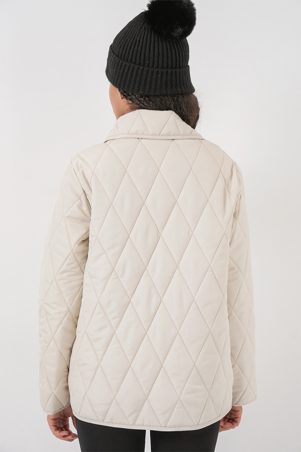 Kadın Kapitone Oversize Mont 5226 - Ekru
