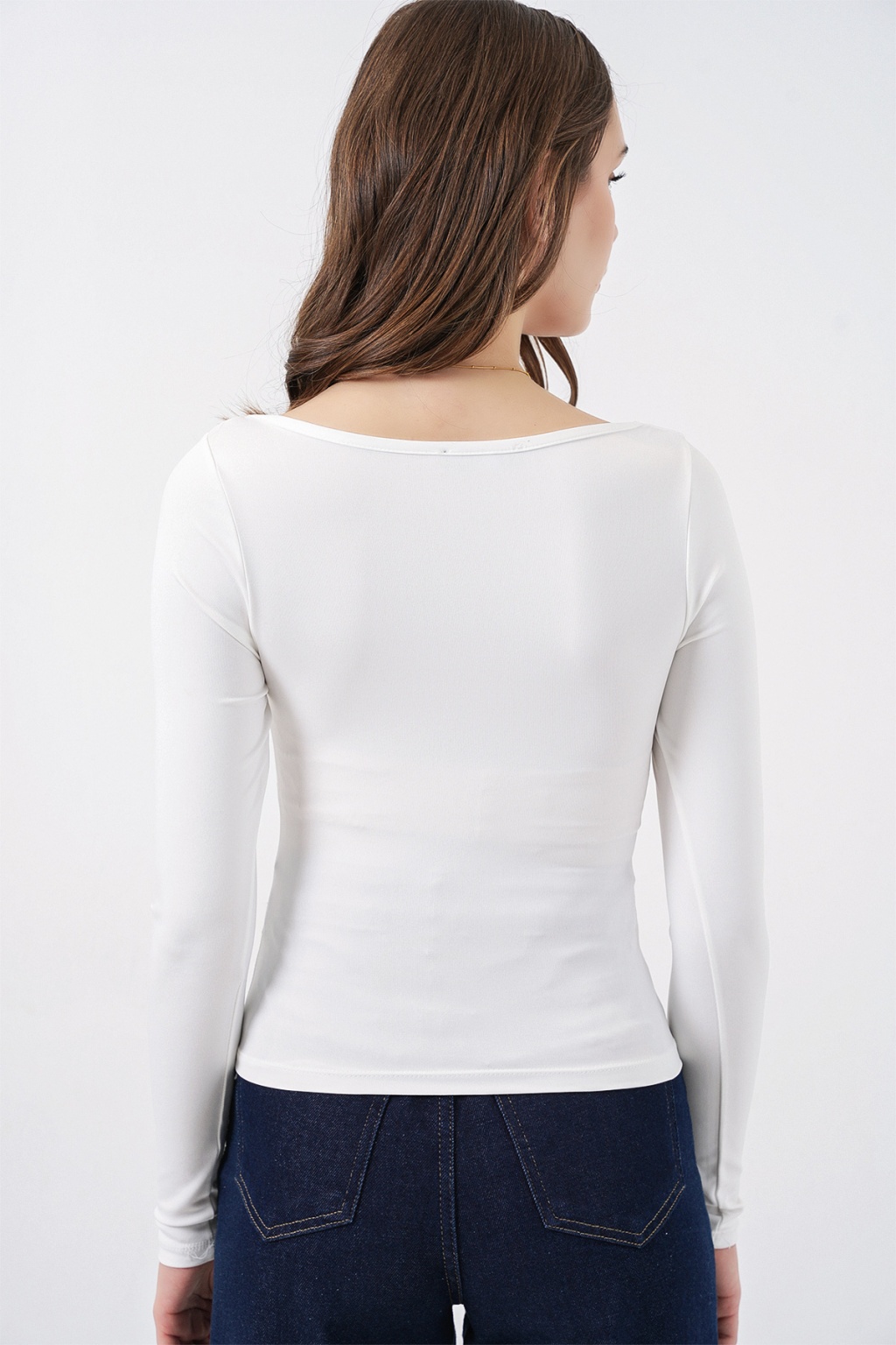 Kadın Kare Yaka Slim Fit Bluz 986 - Beyaz