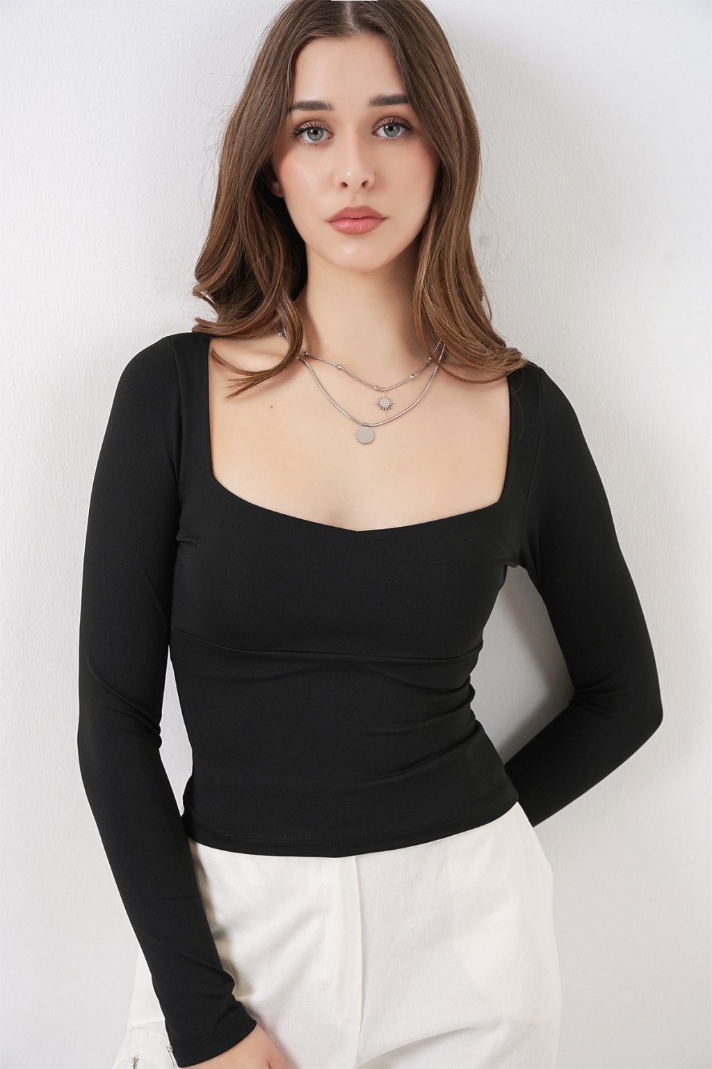 Kadin Kare Yaka Slim Fit Bluz 986Not: Ürün Vücuda Oturan Kaliptir.