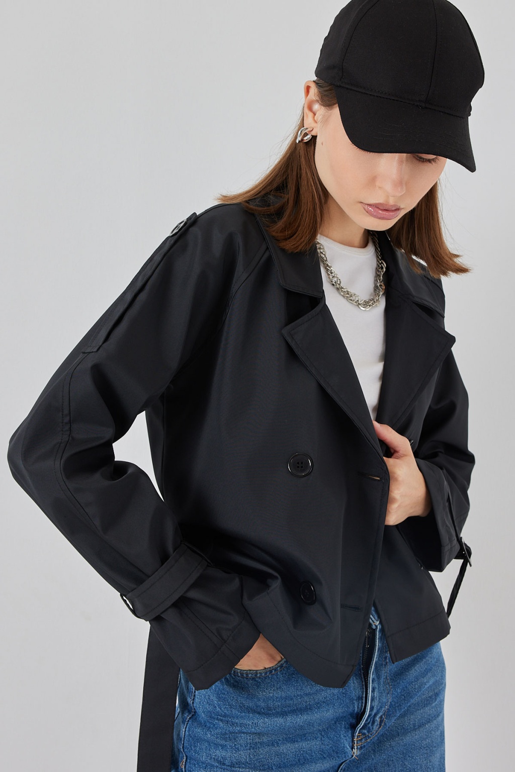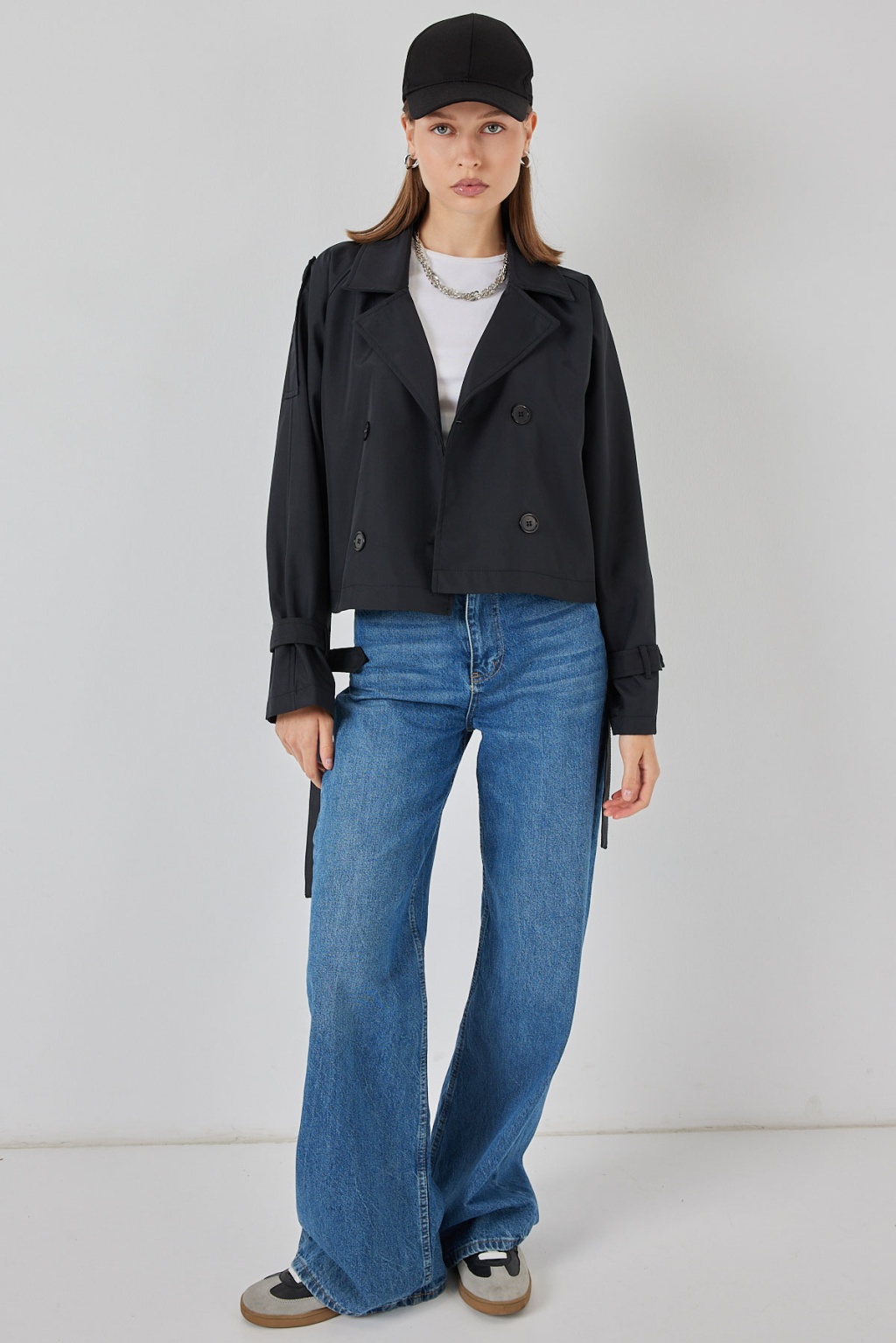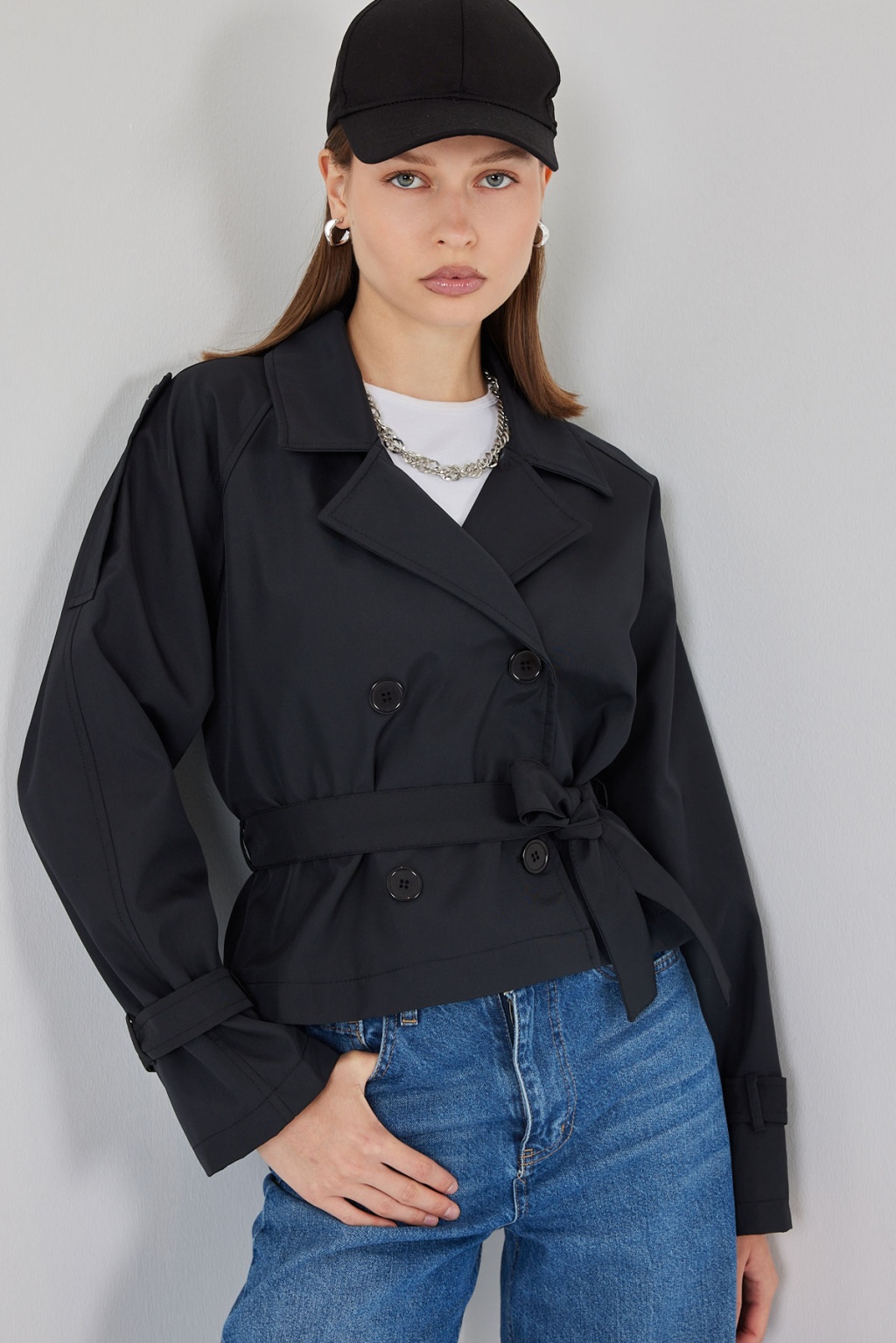 Kadin Kemerli Kisa Trençkot