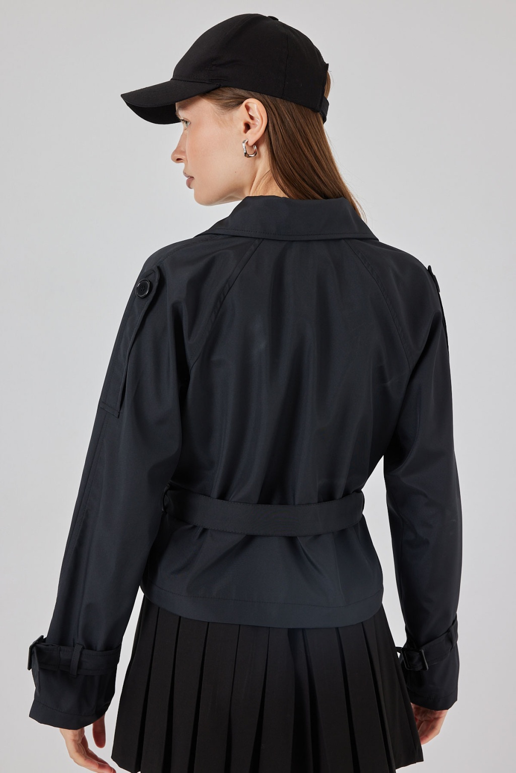 Kadın Kemerli Kısa Trençkot 5970 - Siyah