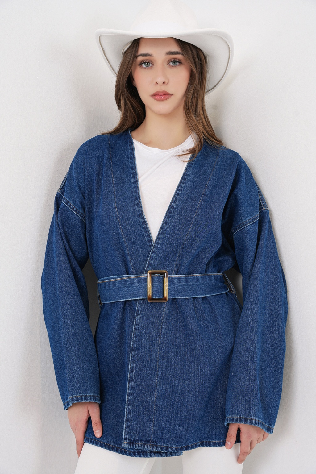 Kadın Kemerli Kot Ceket Tunik 5985 - Mavi