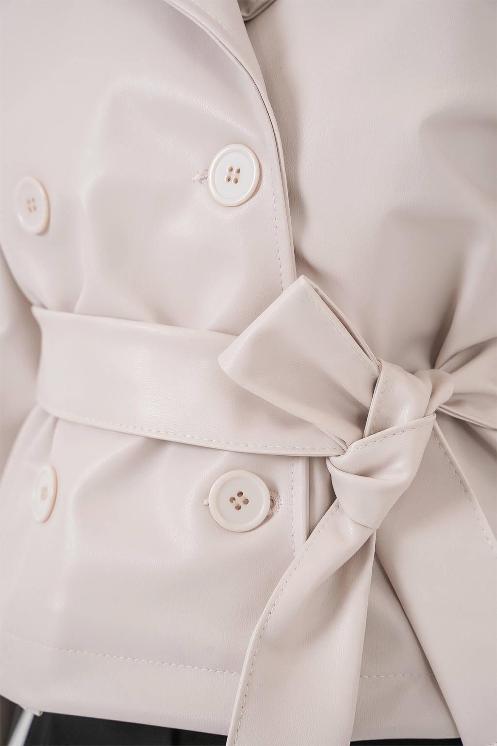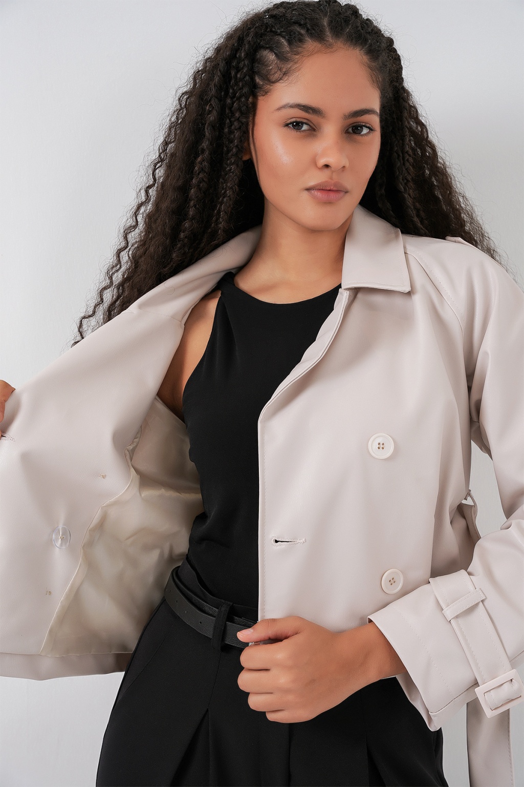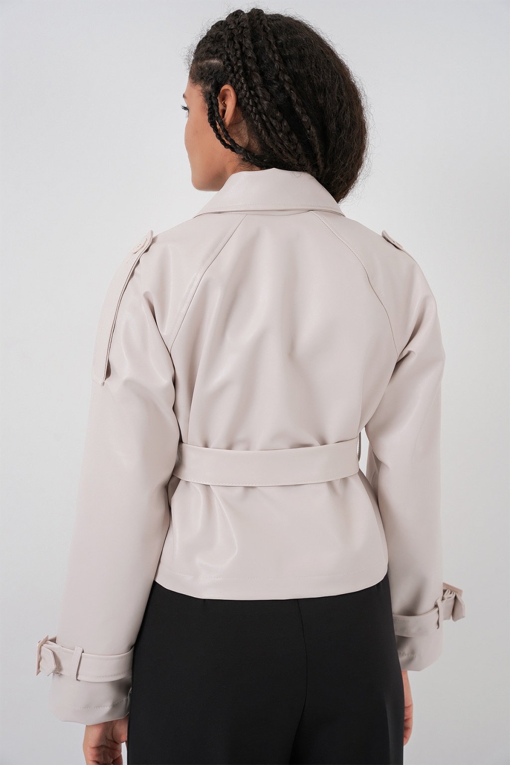 Kadin Kemerli Suni Deri Ceket