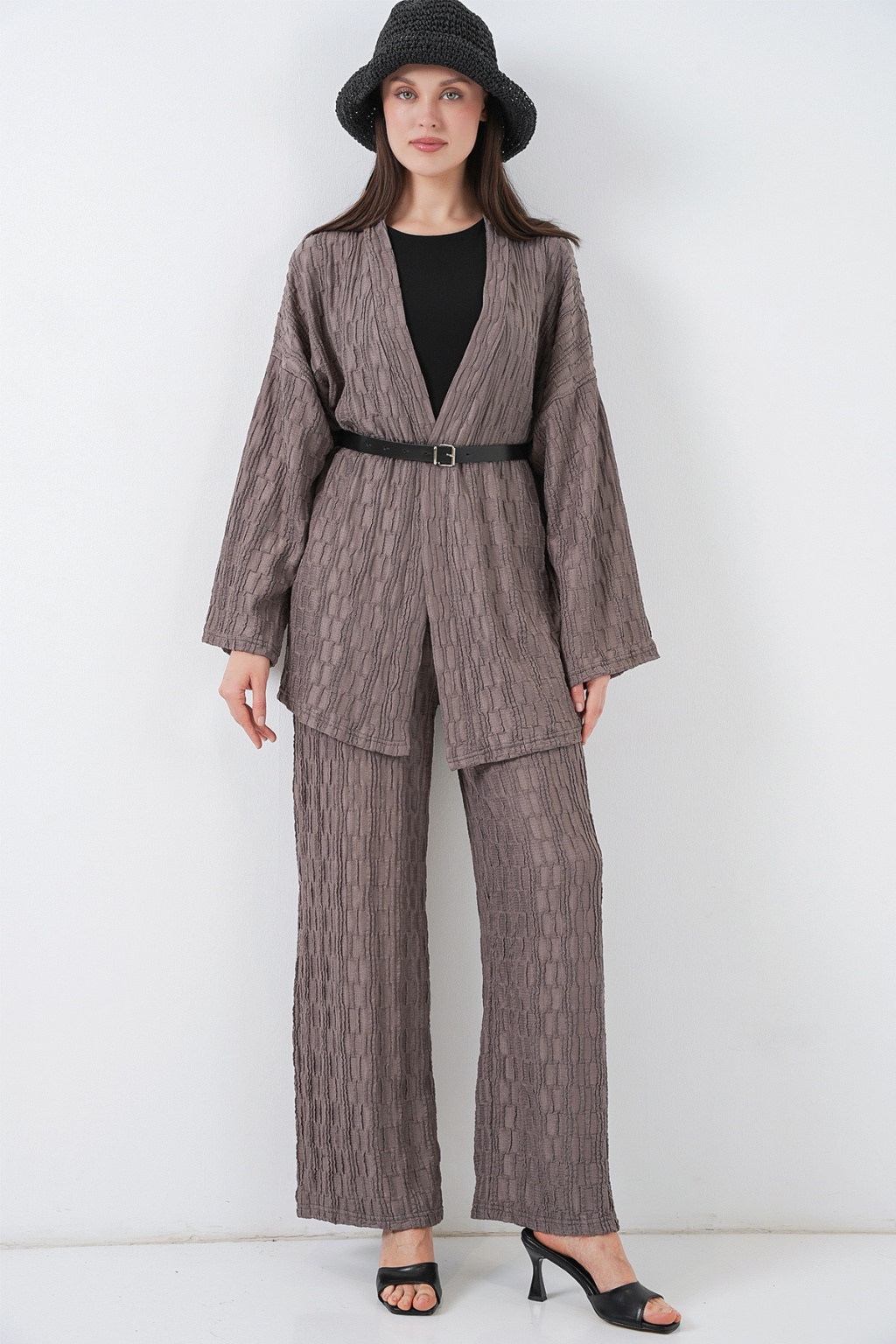 Kadın Kimono Pantolon İkili Takım 30078 - Füme