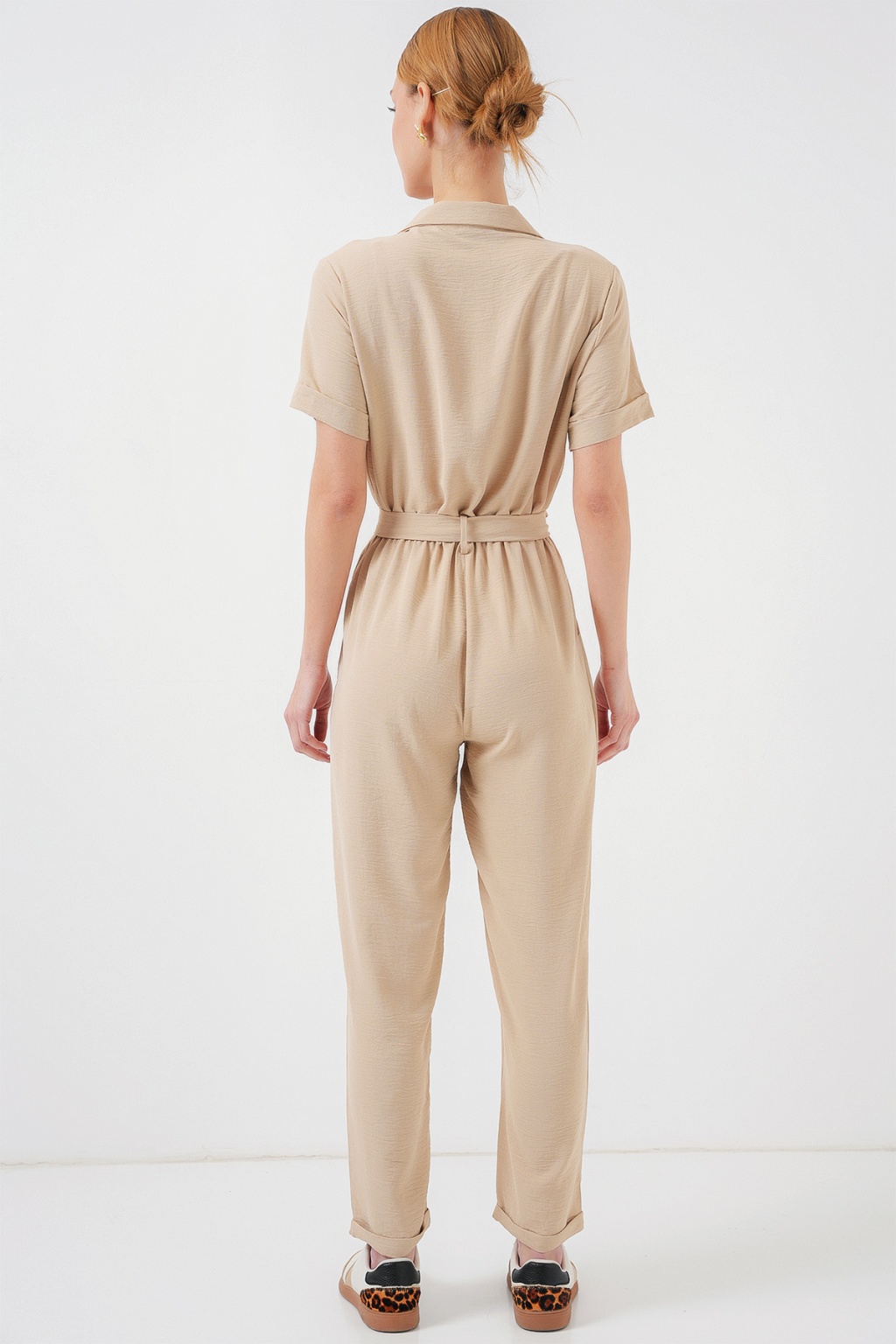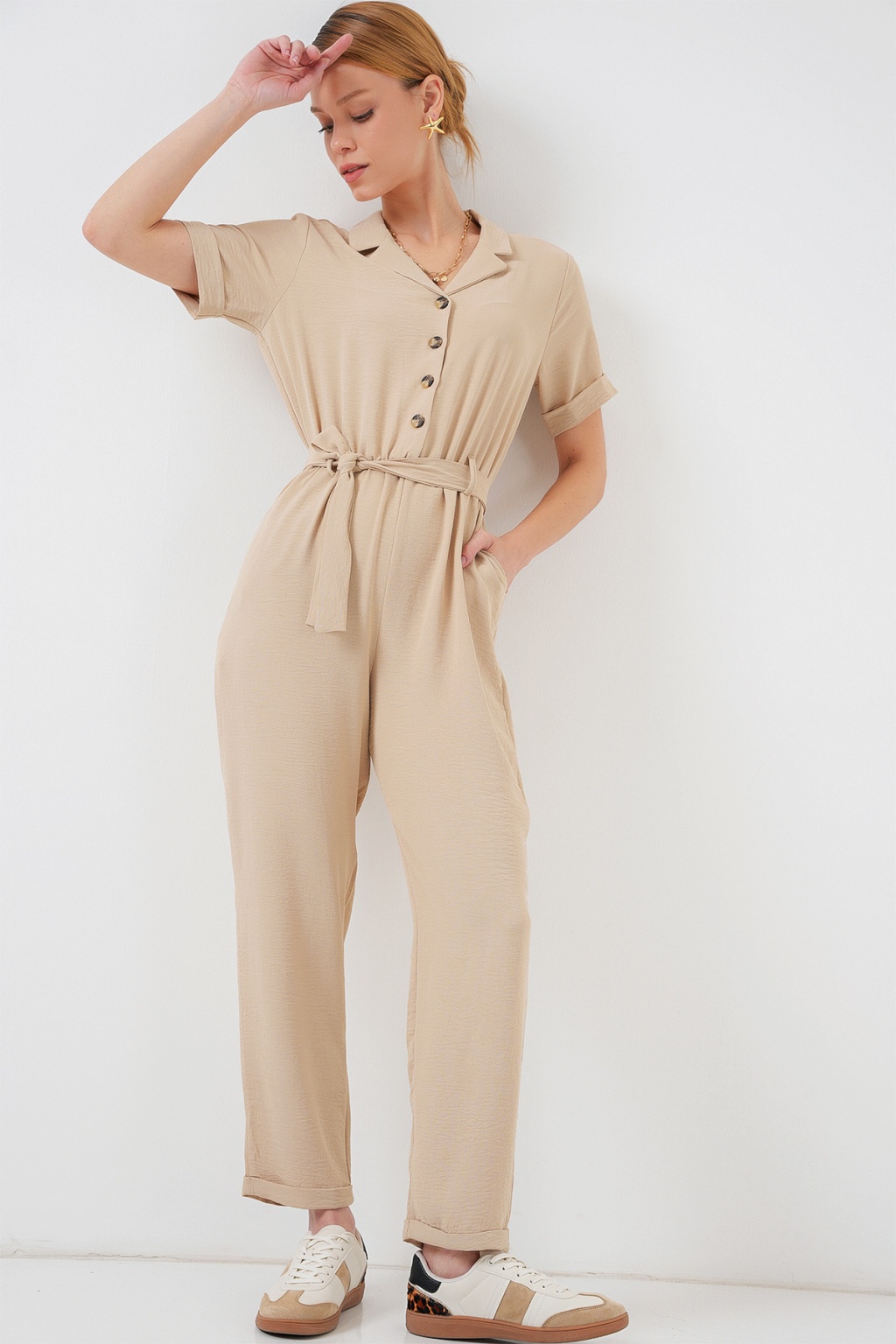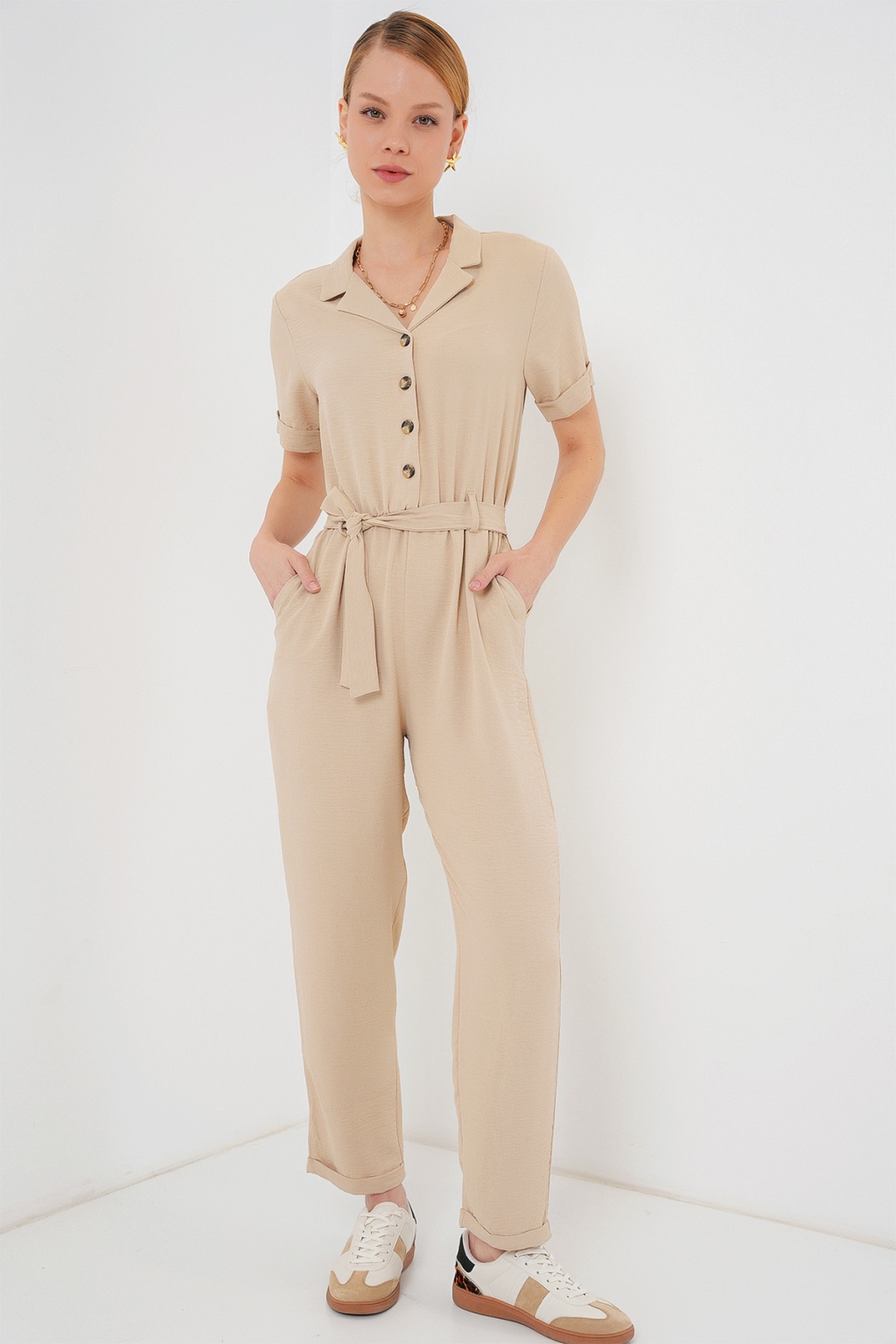 Kadın Kısa Kol Ayrobin Tulum 7030 - Krem