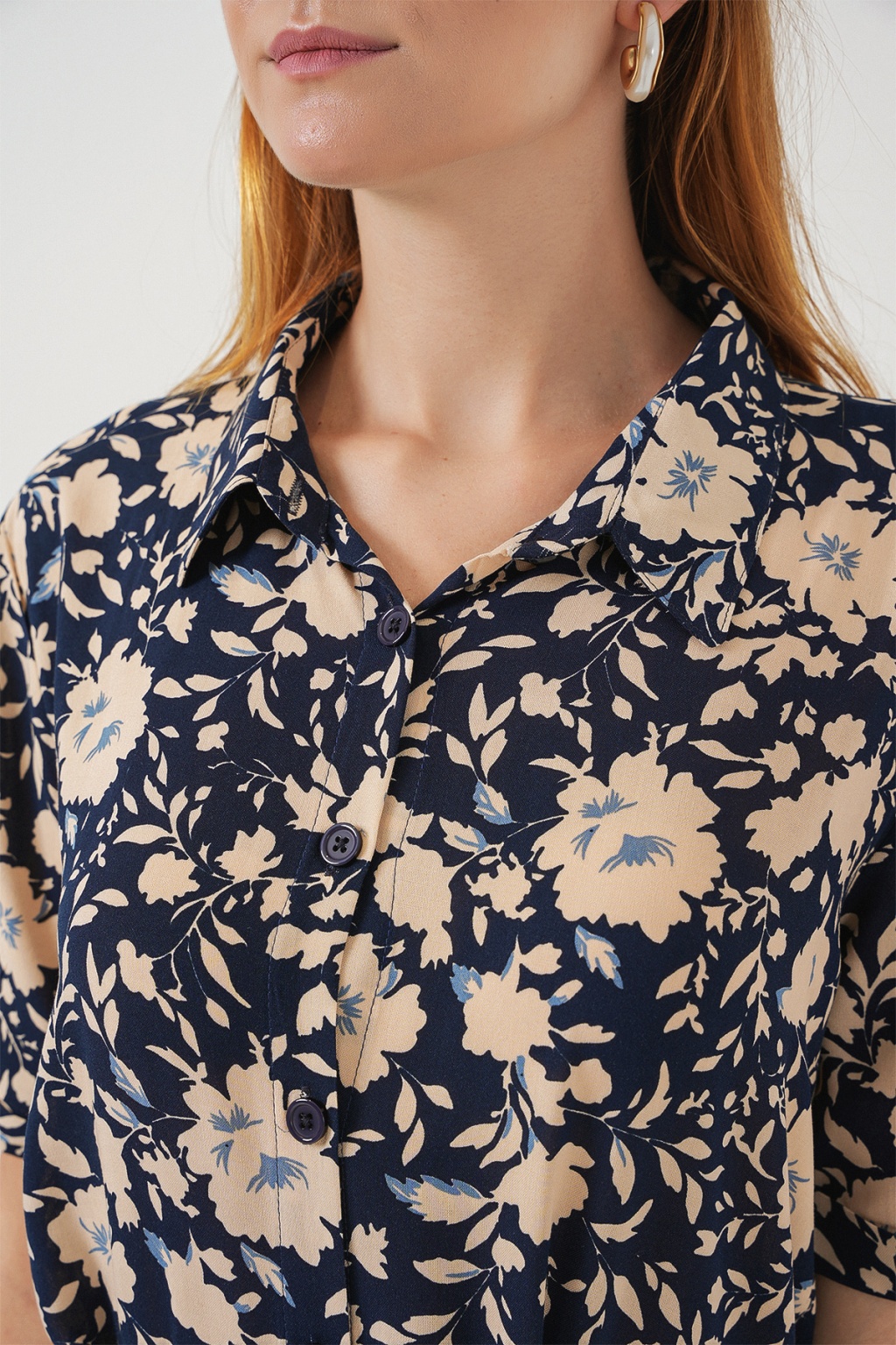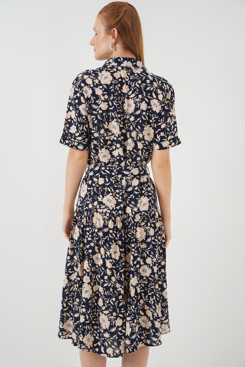 Kadın Kısa Kol Desenli Elbise 2560 - Lacivert