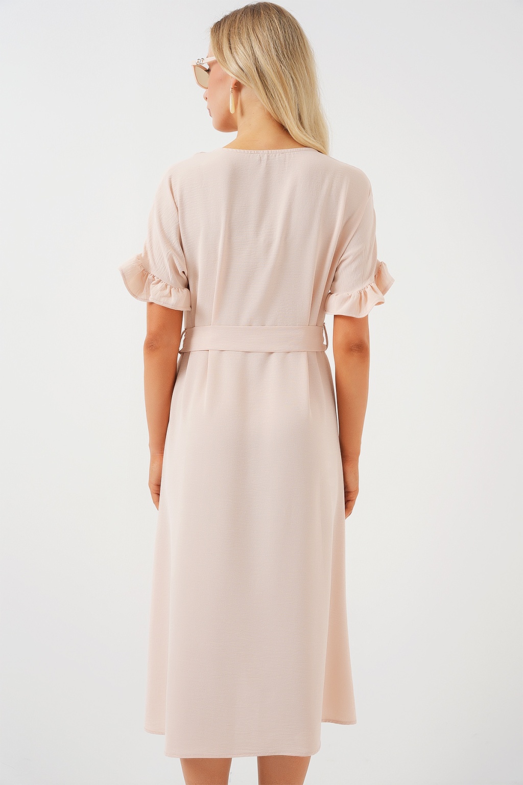 Kadın Kısa Kol Düğmeli Elbise 2555 - Krem