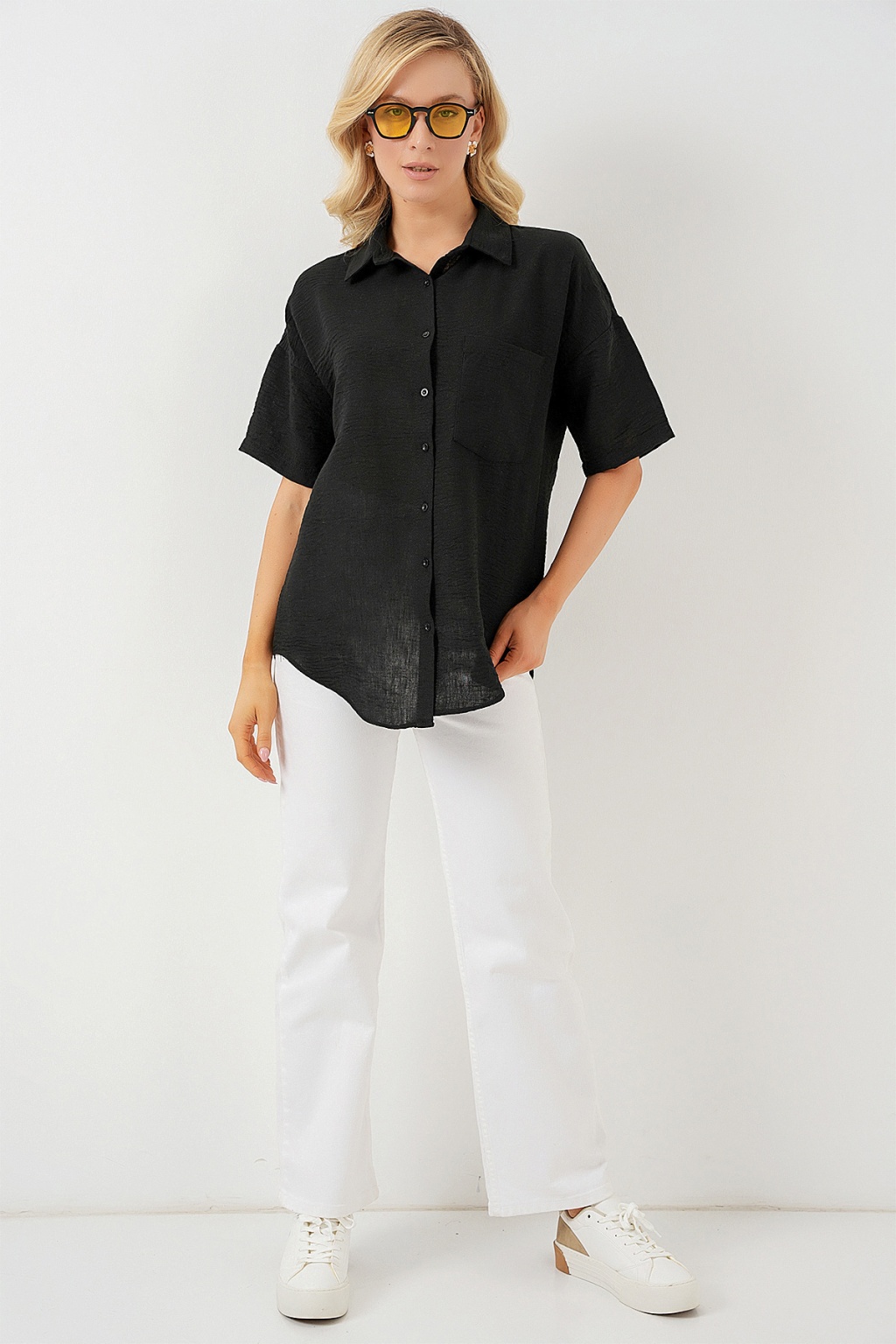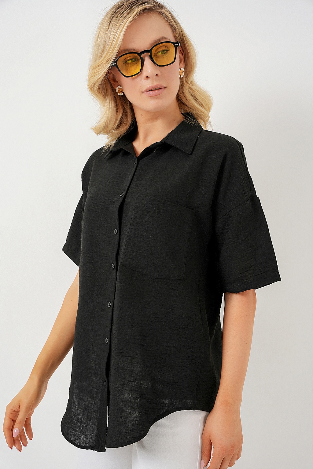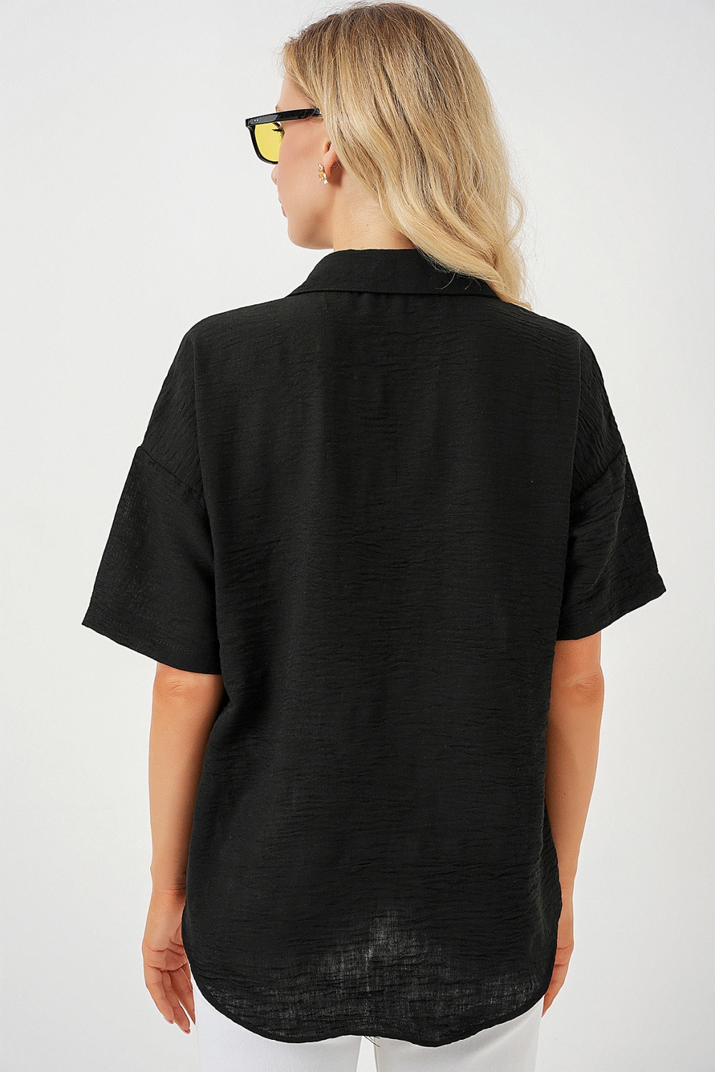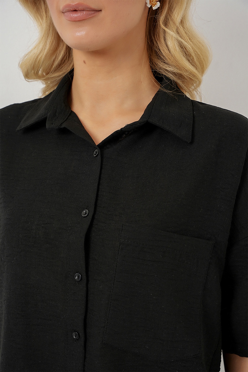 Kadin Kisa Kol Keten Görünümlü Gömlek