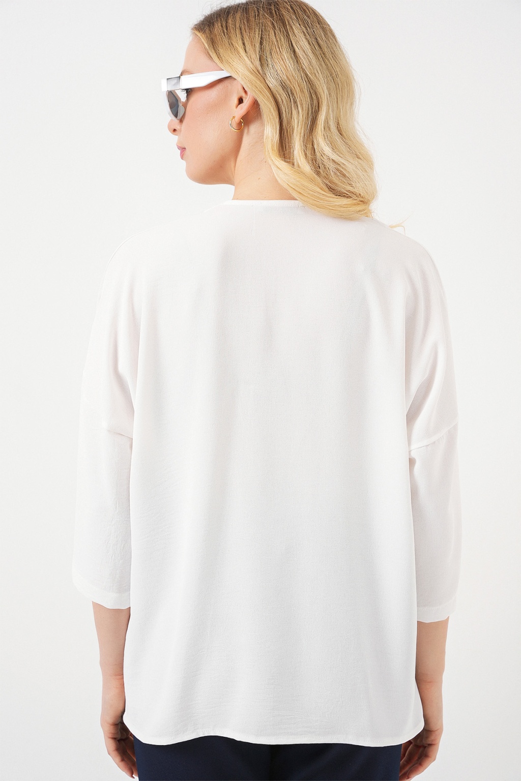 Kadın Kısa Kol Oversize Kimono 5969 - Beyaz