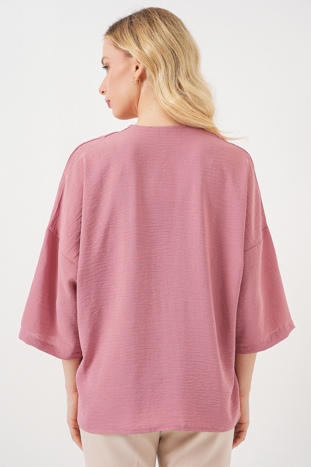 Kadın Kısa Kol Oversize Kimono 5969 - Gül Kurusu
