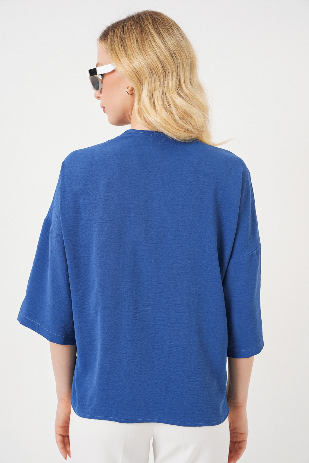 Kadın Kısa Kol Oversize Kimono 5969 - İndigo