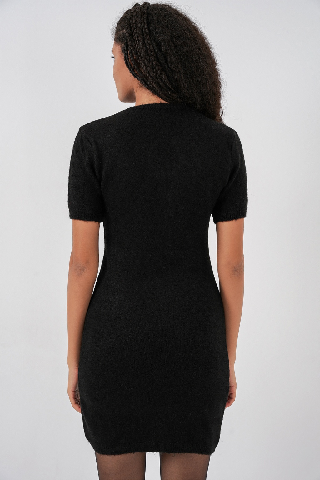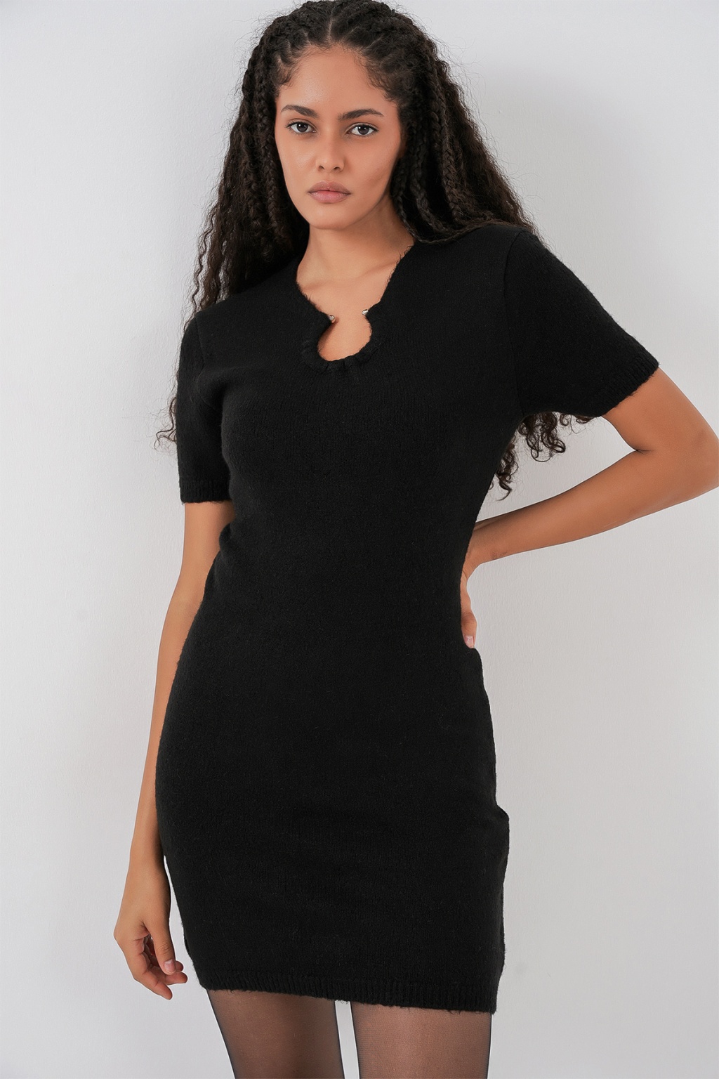 Kadın Kolye Detaylı Triko Elbise 15989 - Siyah