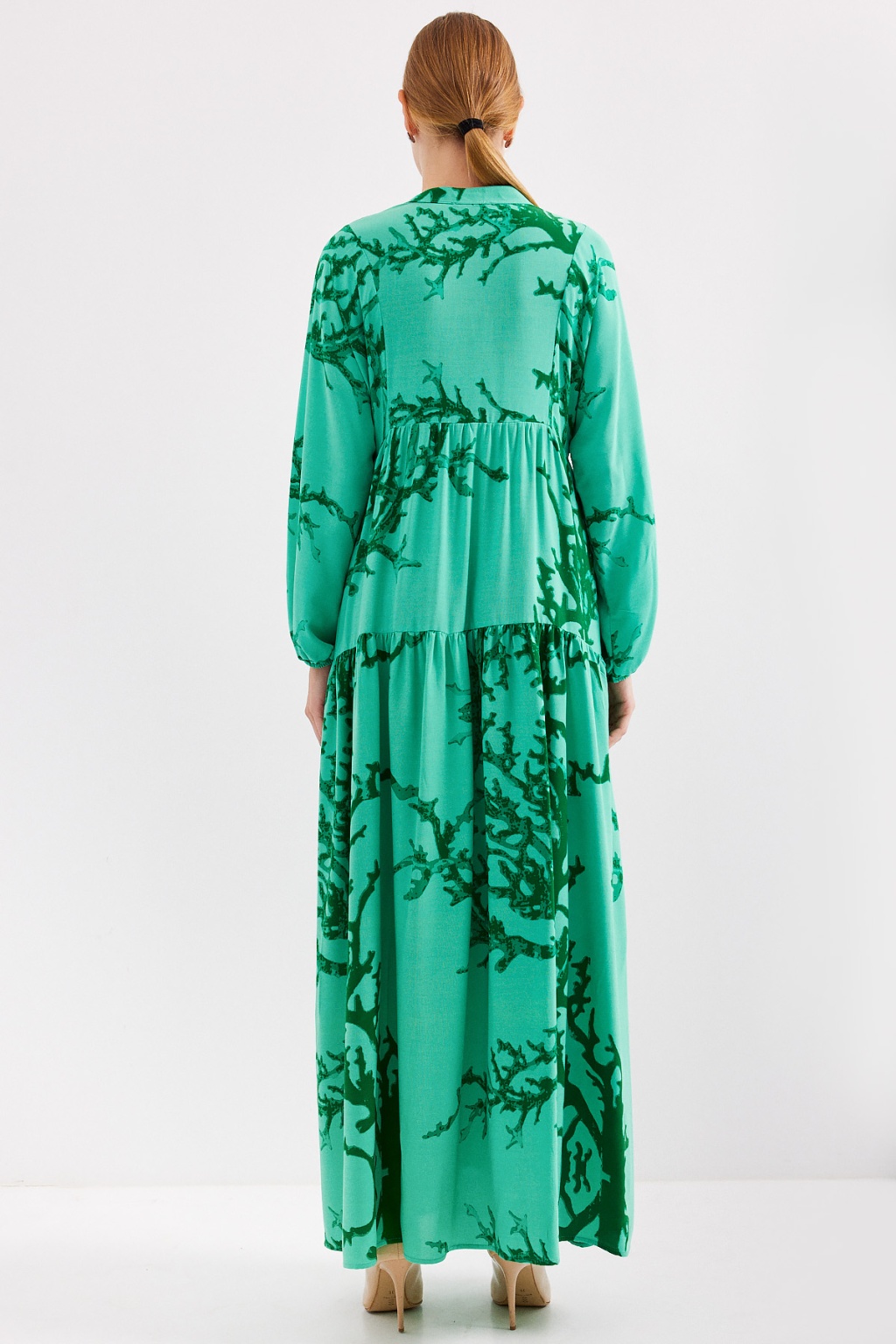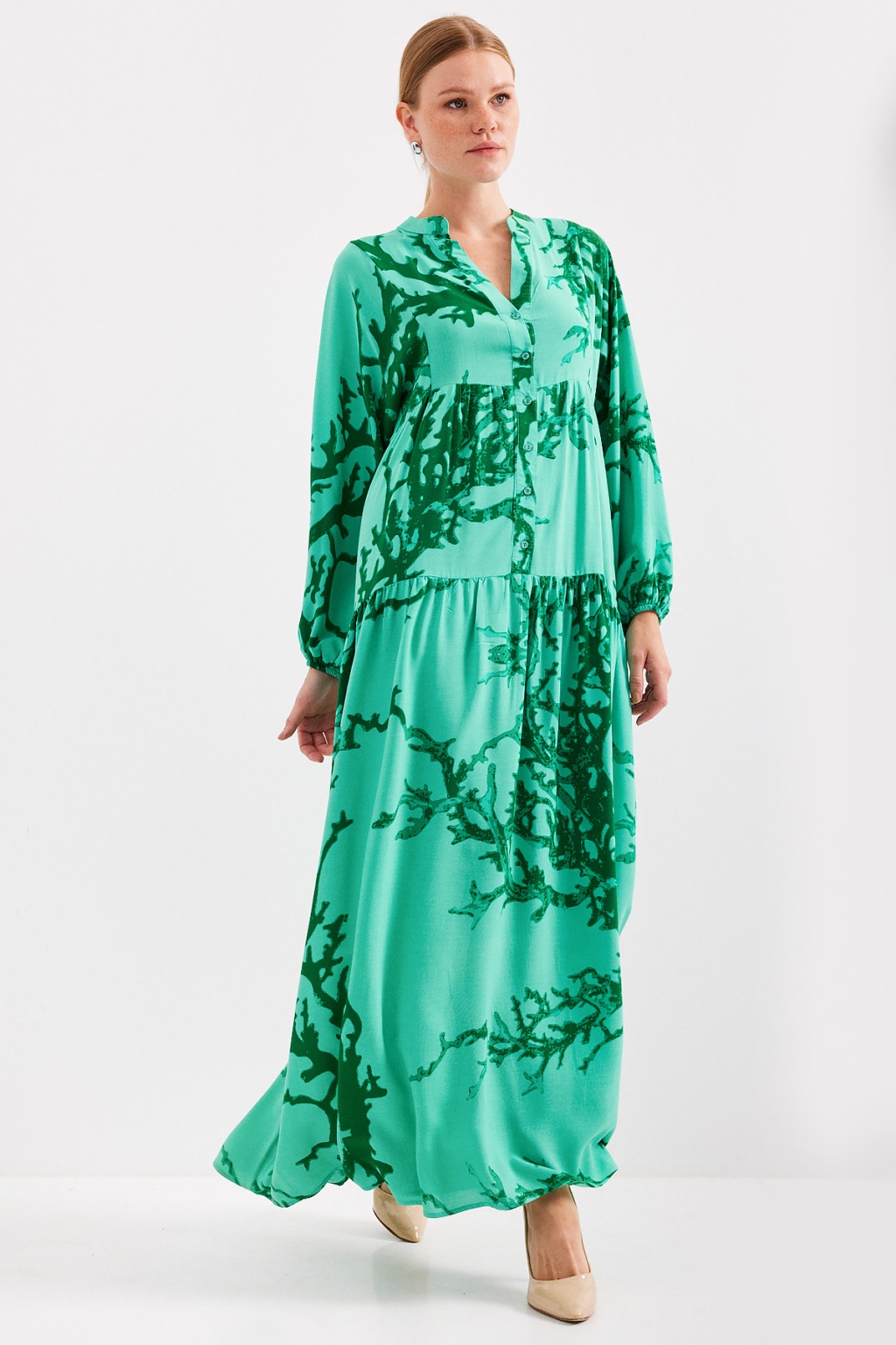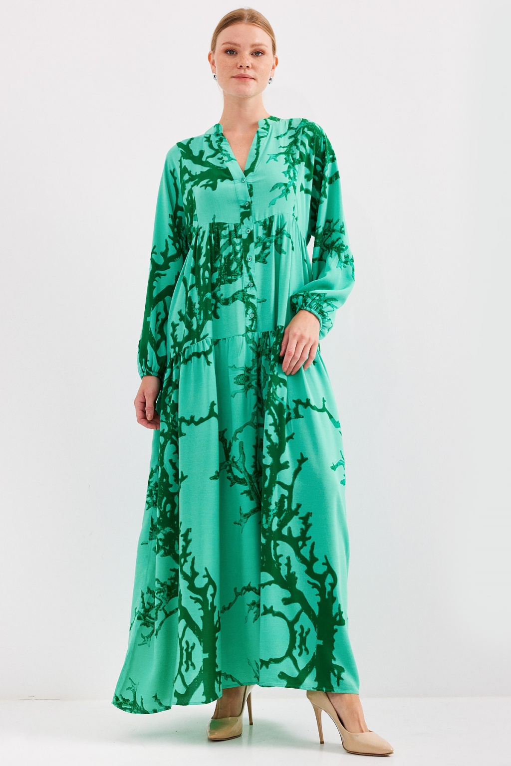 Kadın Koyu Yeşil Viskon Tesettür Elbise 2423