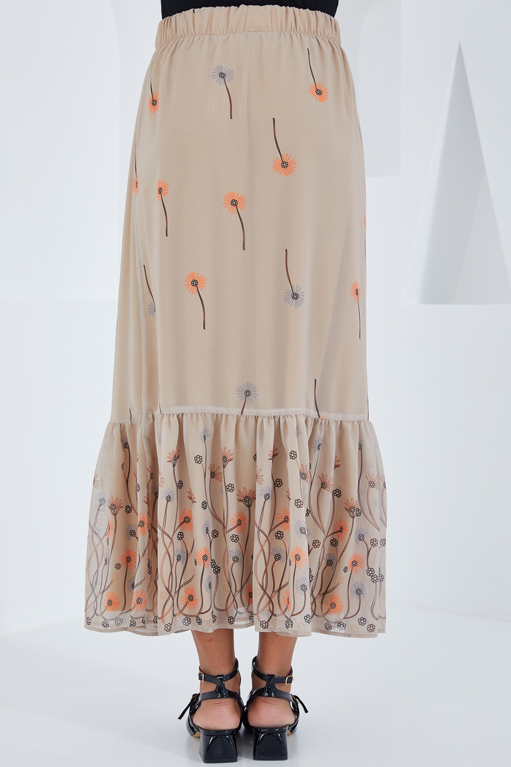 Kadın Krem Desenli Şifon Etek 8010