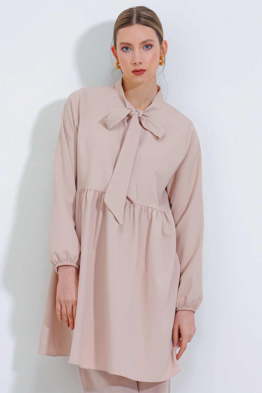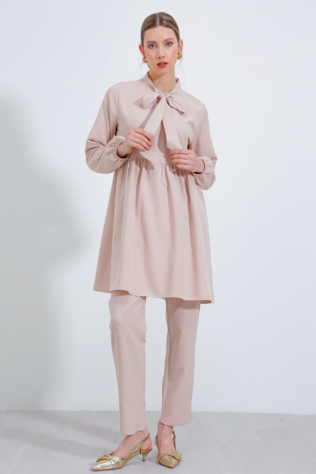 Kadın Krem Örme Pantolon Tunik Alt Üst Takım 6654